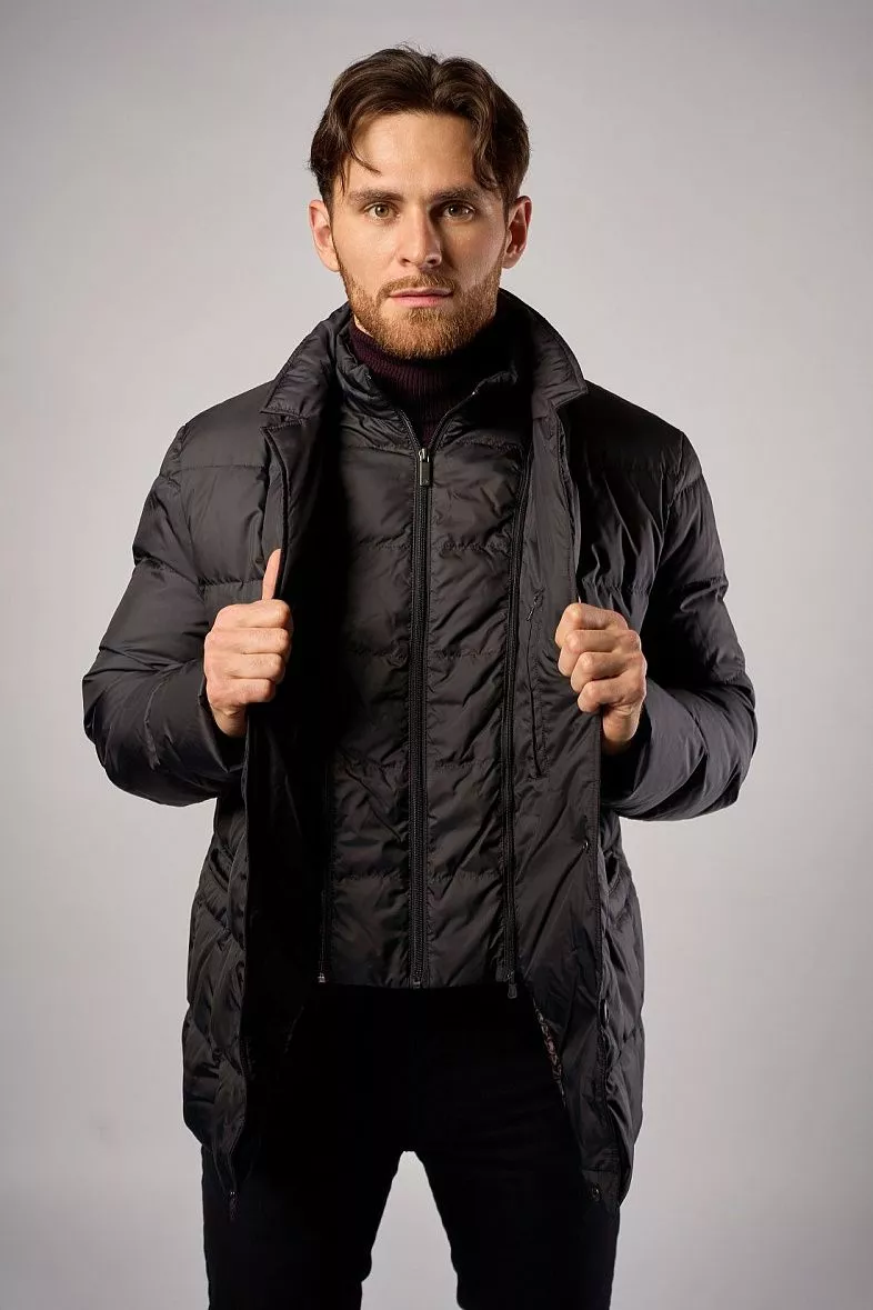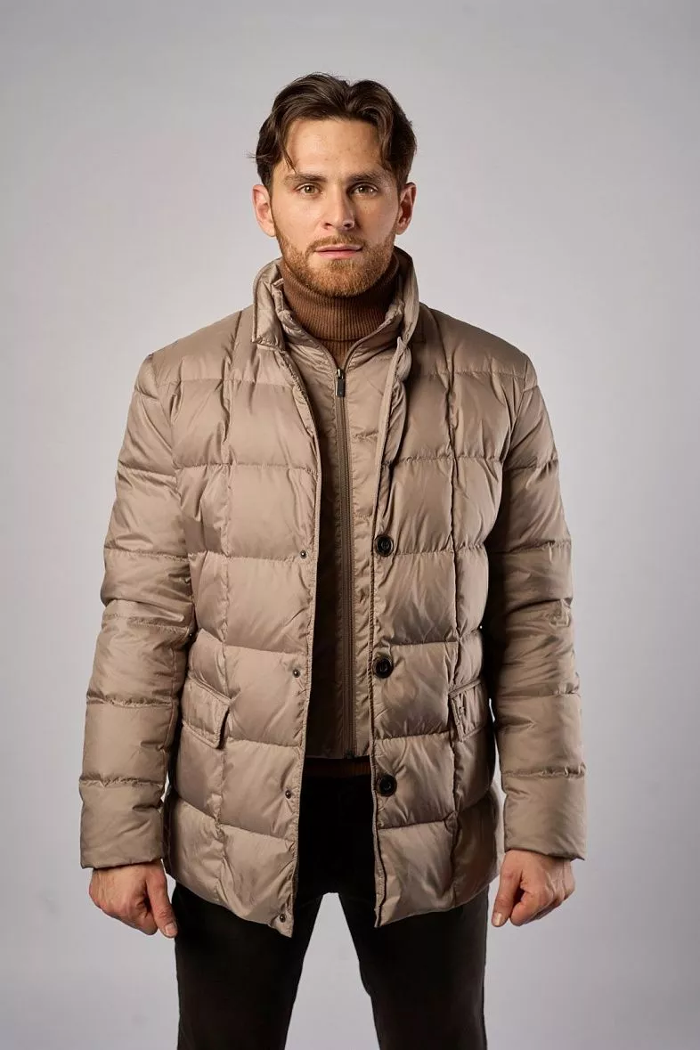 Стеганая куртка. Это выбор мужчин, сочетающих в стиле комфорт. Куртка имеет фактурный крой, состоящий из отдельно прошитых элементов. Стеганая куртка обычно короткой длины, достаточно легкая, без капюшона и горловины. Этот фасон отлично подойдет для города или поездок на машине. Но минус в том, что будет некомфортно находиться долго на улице в холодную погоду.