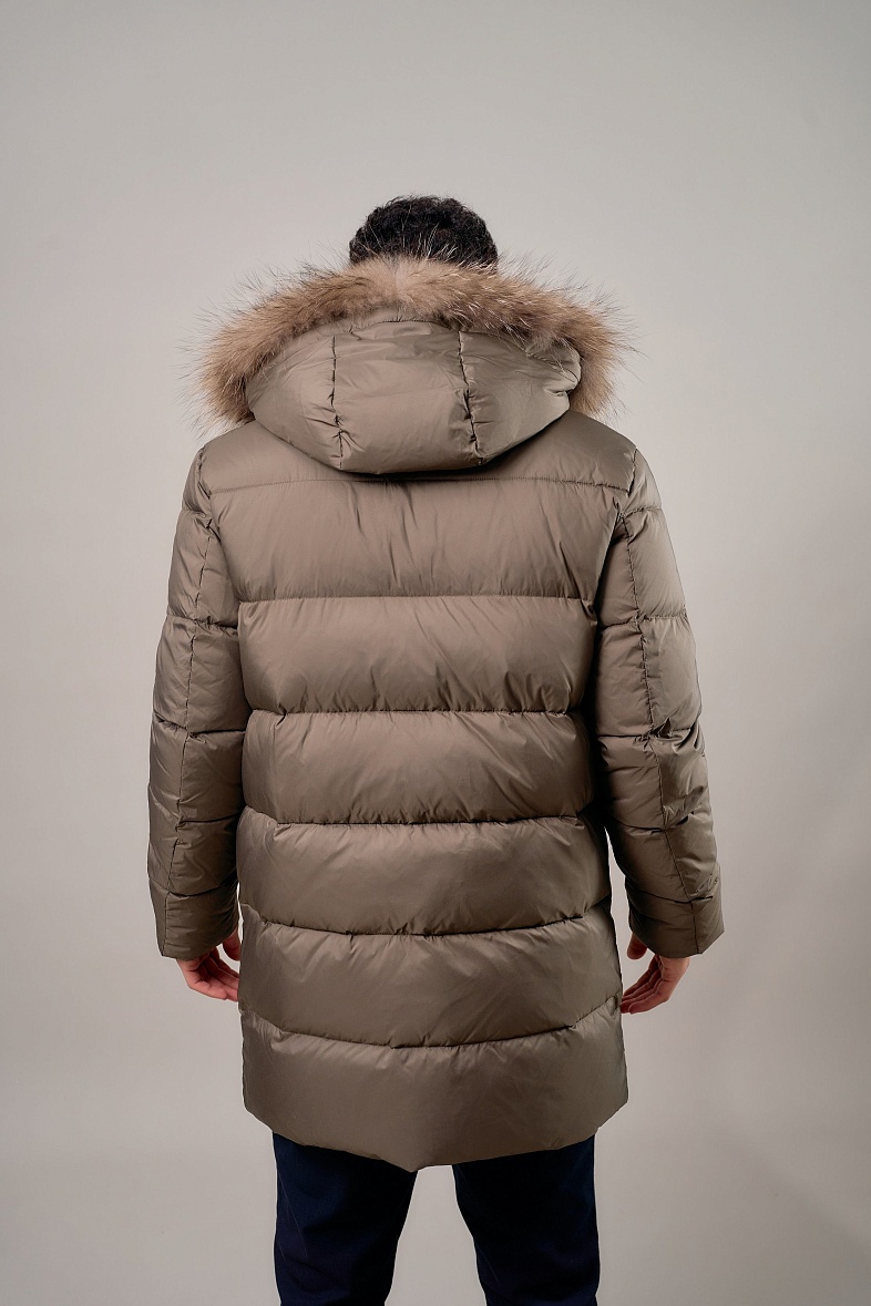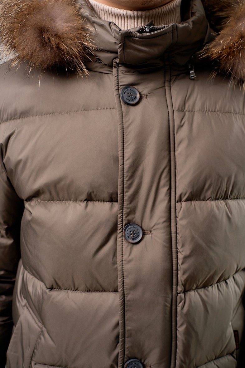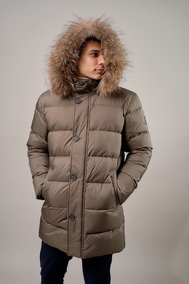 Куртка мужская на натуральном пуху с отд. из меха енота и трикотажа бежевый MADZERINI IGO/U63-205 (темно-бежевый)