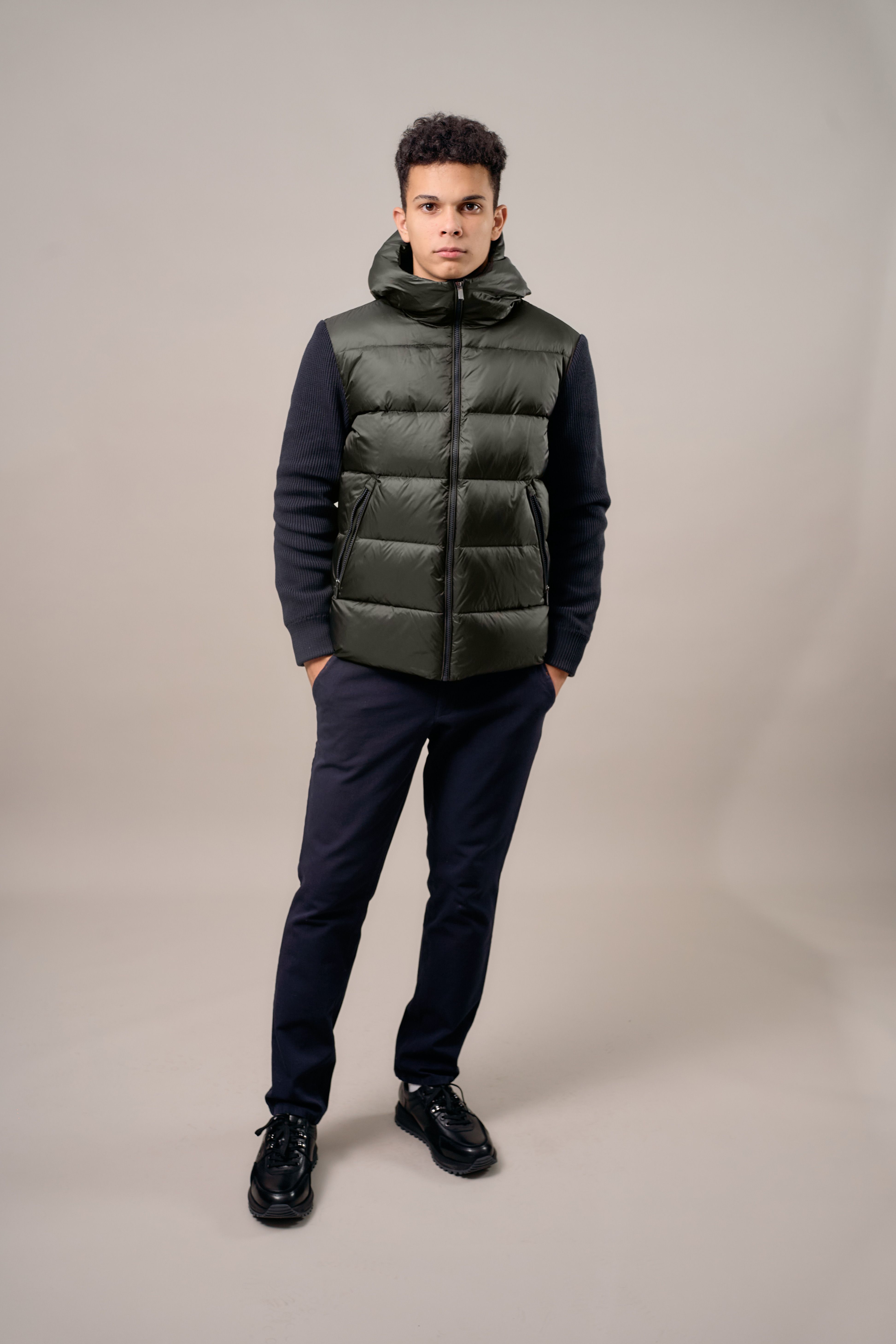 Куртка мужская нанатуральном пуху и утеплителе с отд. из трикотажа синий MADZERINI TIRSO/U26-133 (тёмно-зелёный)