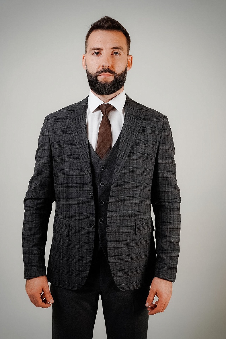 Костюм мужской   серый, черный, бежевый в клетку MCR 45276