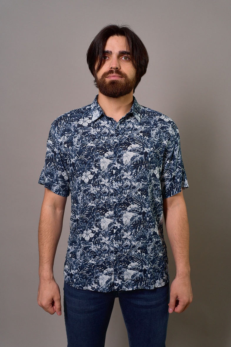 Рубашка мужская короткий рукав синий SMART MEN 9012 40