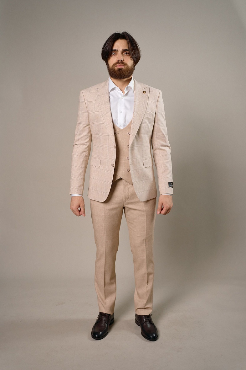 Костюм мужской классический тройка бежевый в клетку SMART MEN 45381.21Y.0034 бежевый