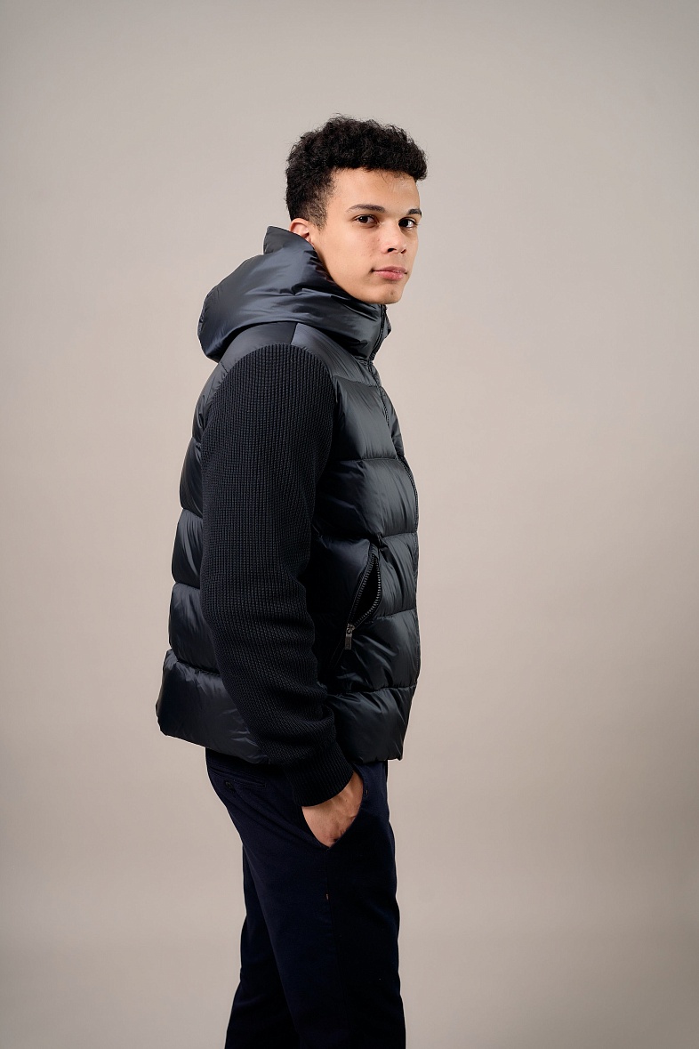 Куртка мужская нанатуральном пуху и утеплителе с отд. из трикотажа синий MADZERINI TIRSO/U26-14 (сине-чёрный)