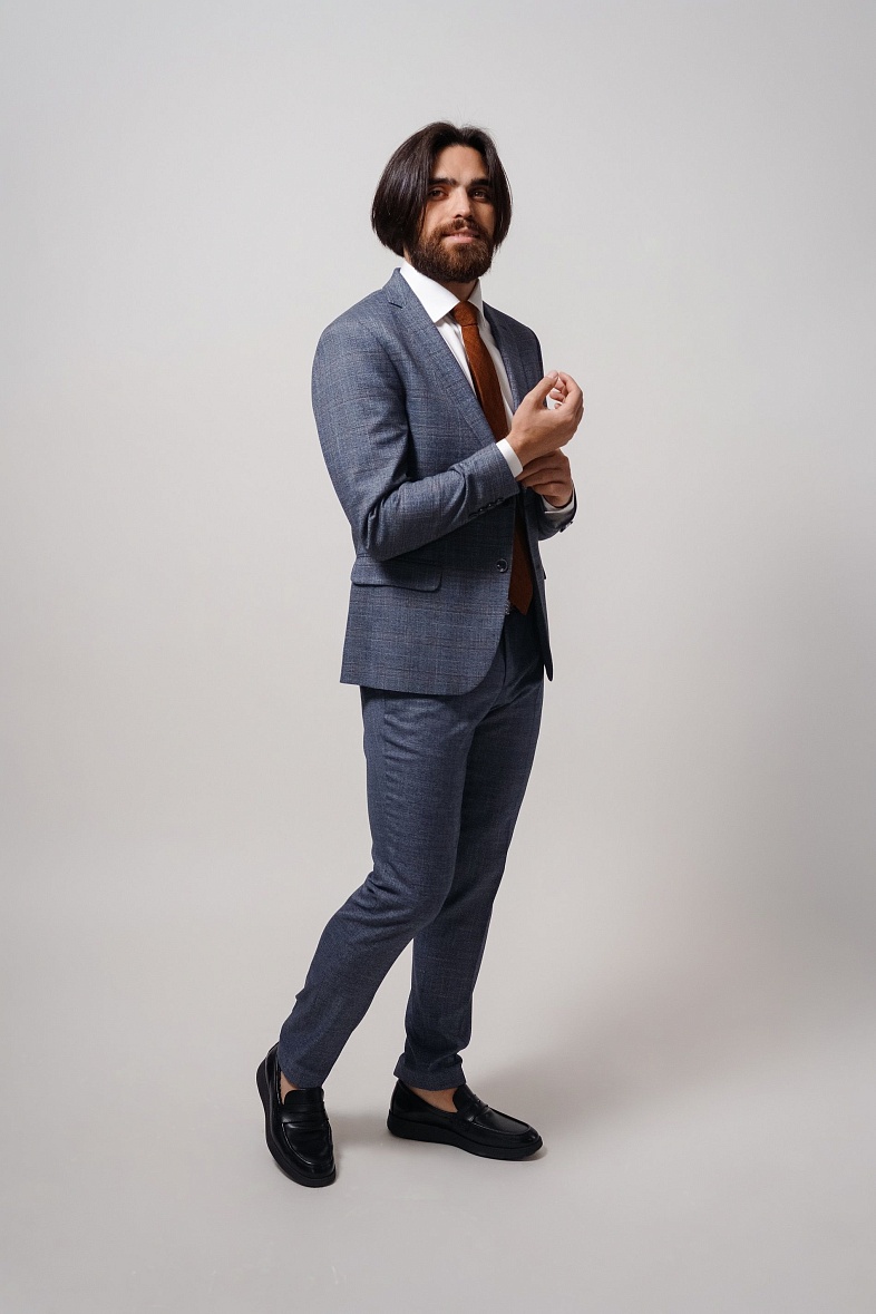 Костюм мужской   синий в клетку TRUVOR 2412V 3079 тк.СПО39331