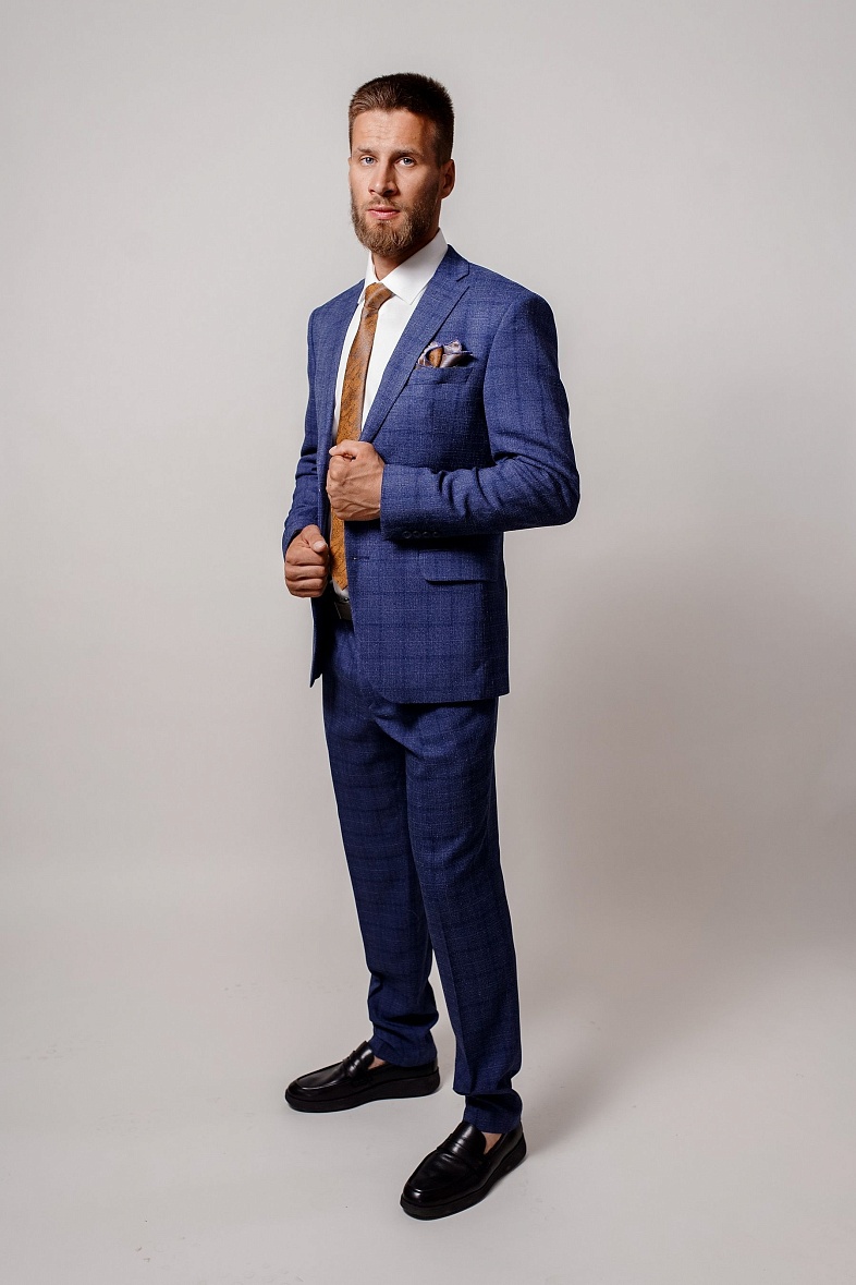 Костюм мужской   синий в клетку TRUVOR 2202V 3079 тк.СПО39035