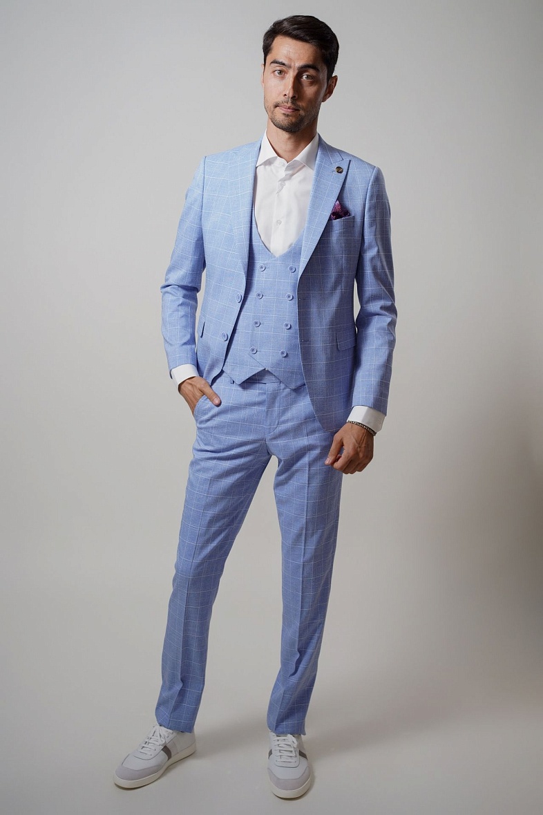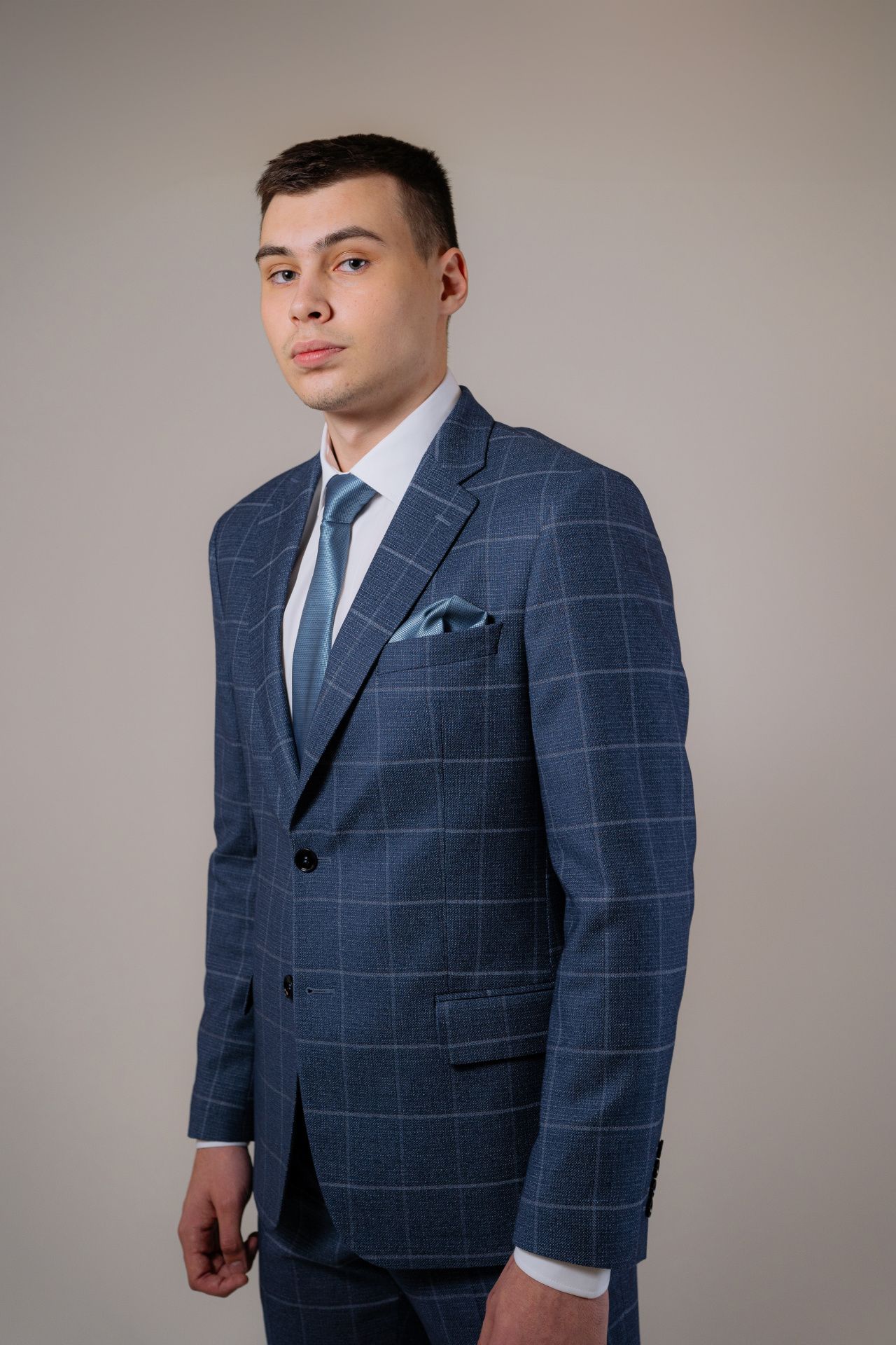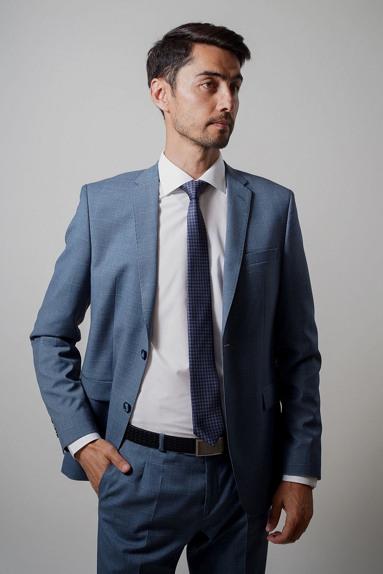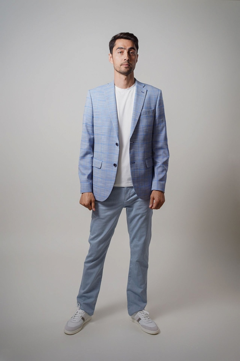 Пиджак мужской   голубой в клетку TRUVOR 1912V тк.СПО38881