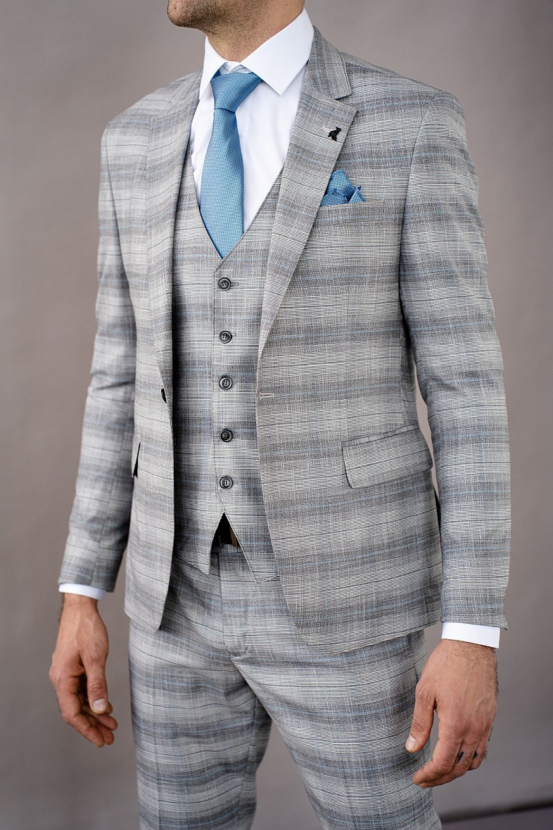 Пиджак мужской  голубой в клетку VALENTI 1390-VF-35S
