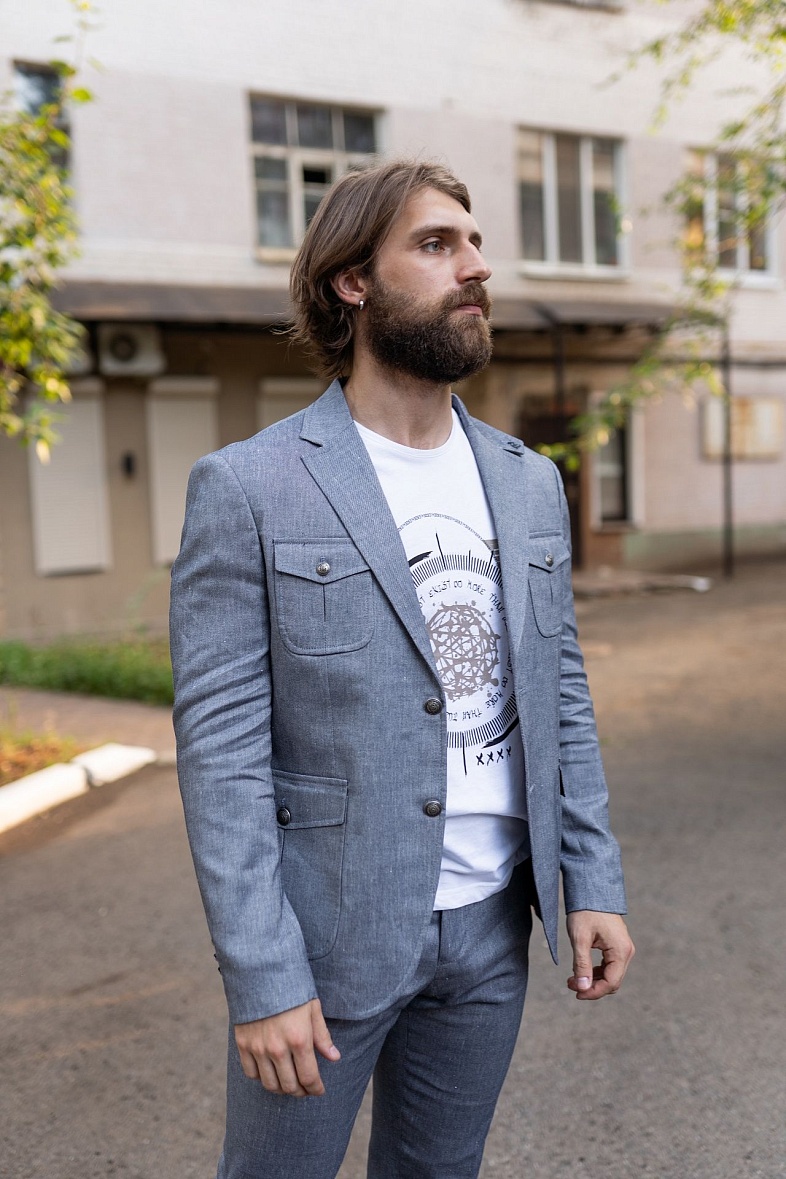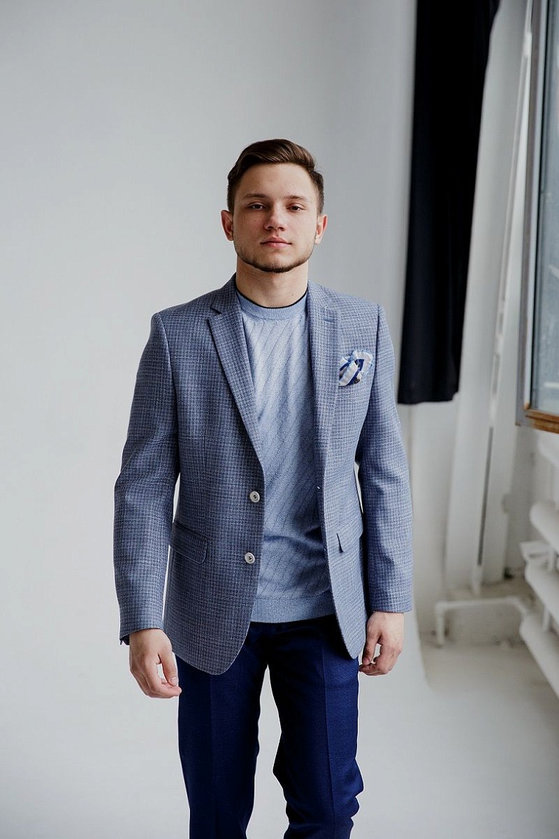 Пиджак мужской  голубой в клетку VALENTI 4224-VT-35S