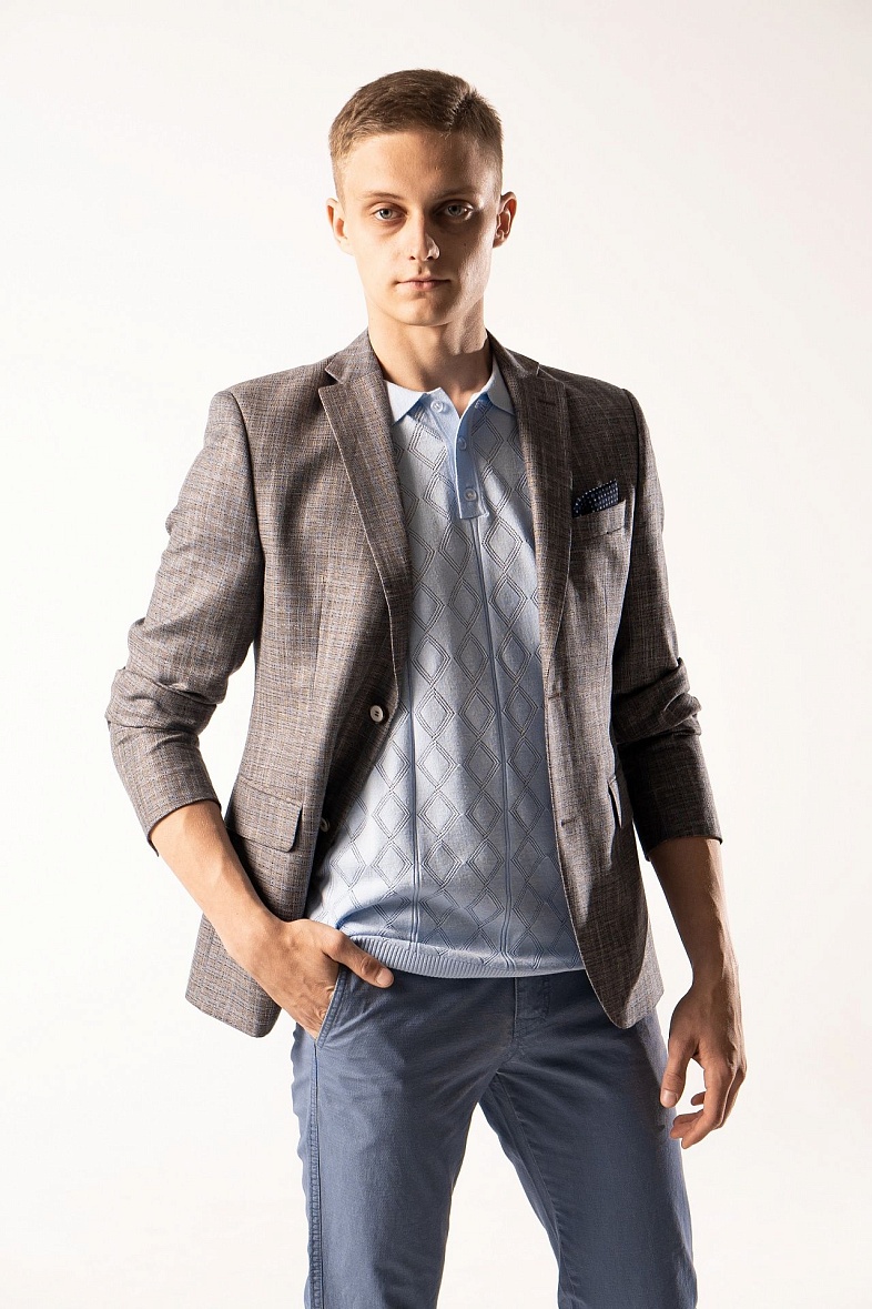 Пиджак мужской  голубой в клетку VALENTI 3459-VS-35S