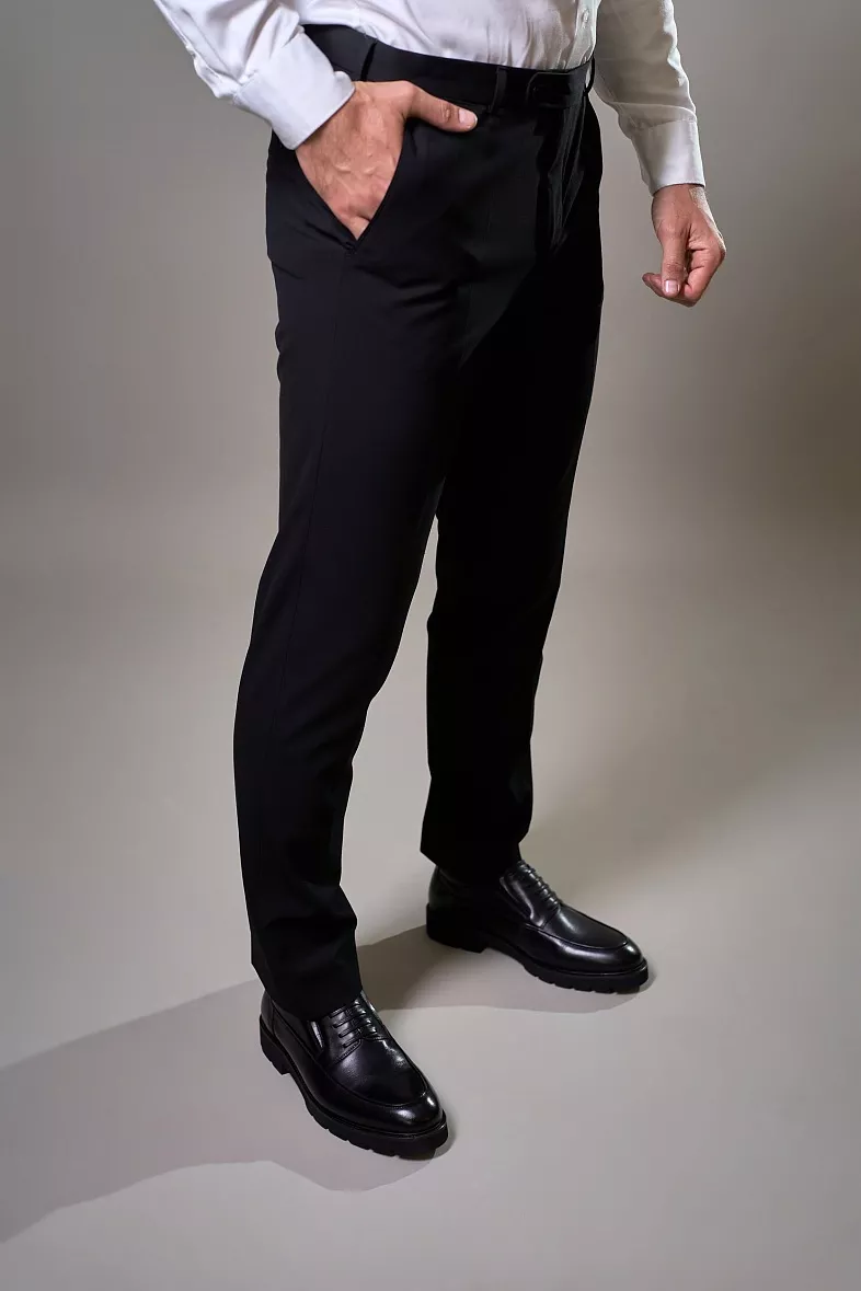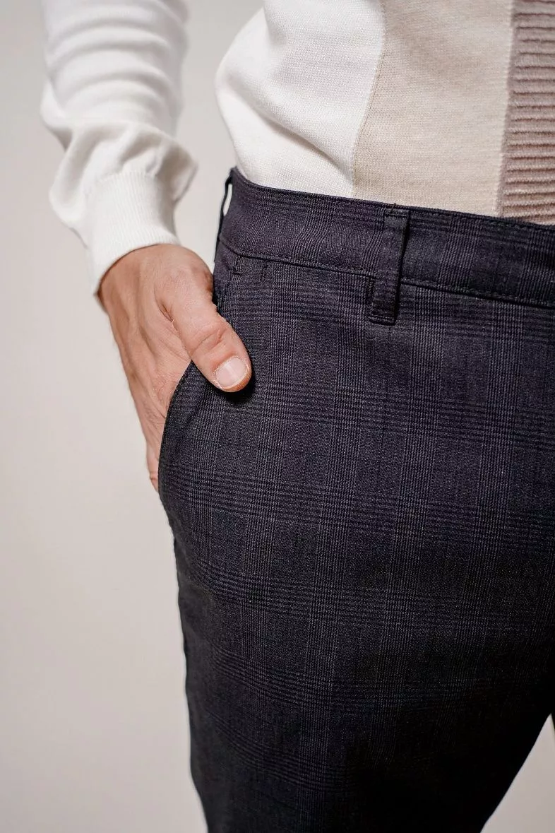 • выбирайте брюки синих, чёрных и коричневых оттенков, которые вы легко сможете вписать в ваш гардероб;