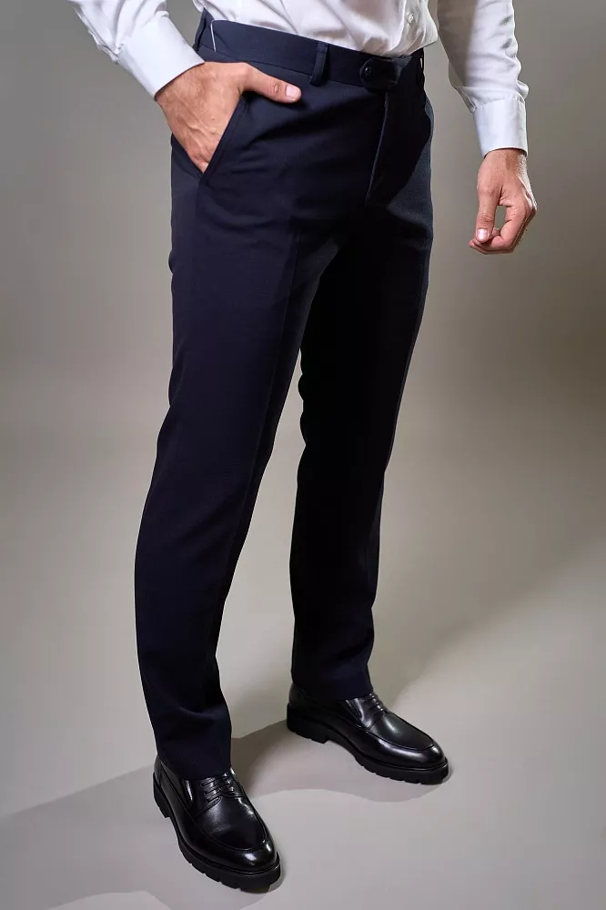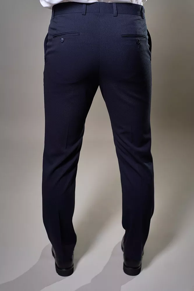 Придайте своему образу утонченность с синими классическими брюками. Их изысканный микропринт в клетку и четкая стрелка добавят неповторимый шарм и выделят вас из толпы. Полуприлегающий крой выгодно подчеркнет вашу фигуру, обеспечивая при этом полную свободу движений. Благодаря смесовому составу с шерстью, брюки дарят комфорт, сохраняя идеальный вид в течение всего дня.