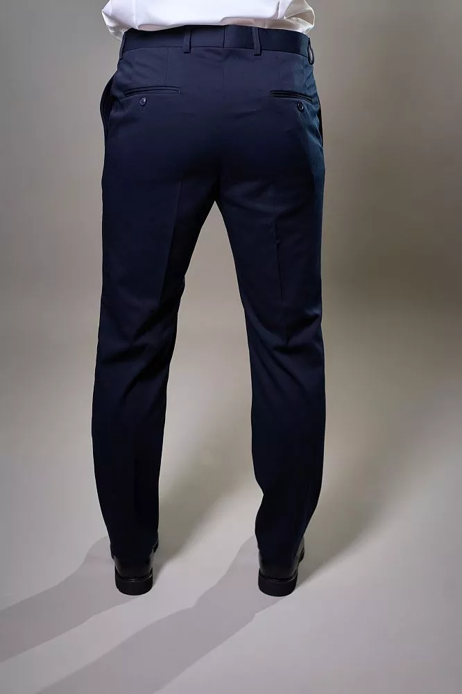 Создайте изысканный образ с синими классическими брюками. Их полуприлегающий крой и четкая стрелка выгодно подчеркивают фигуру, обеспечивая современный и аккуратный вид. Благодаря смесовому составу с шерстью, они дарят комфорт, сохраняя форму в течение дня. Это идеальный выбор, чтобы выглядеть стильно и уверенно в любой ситуации.