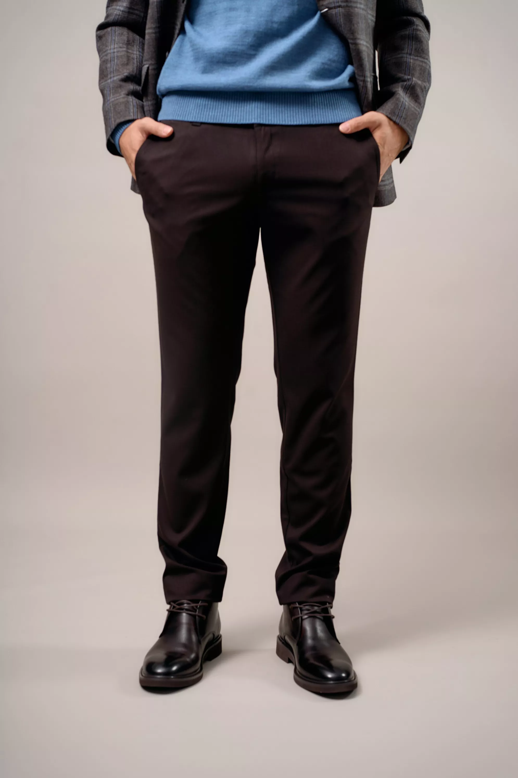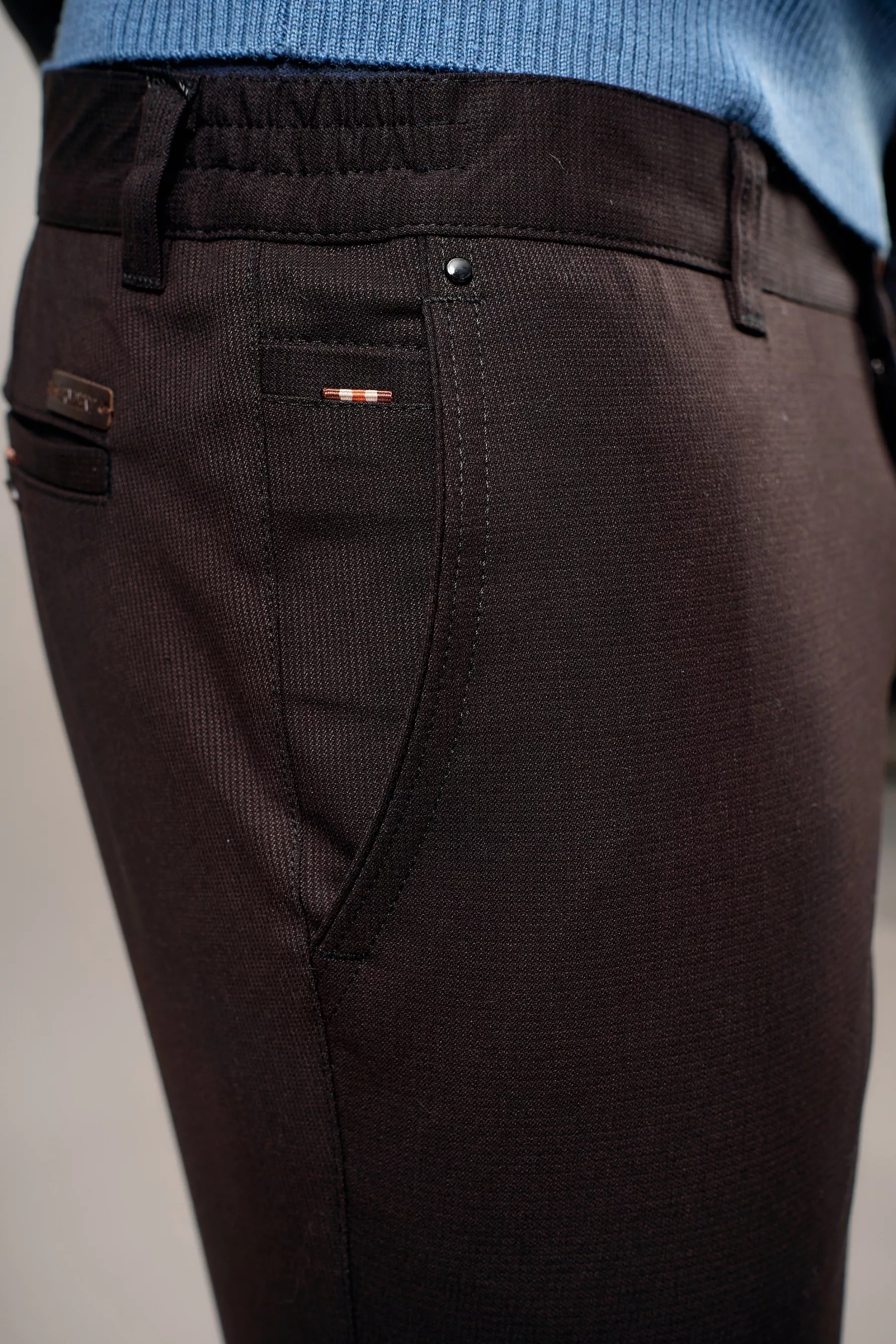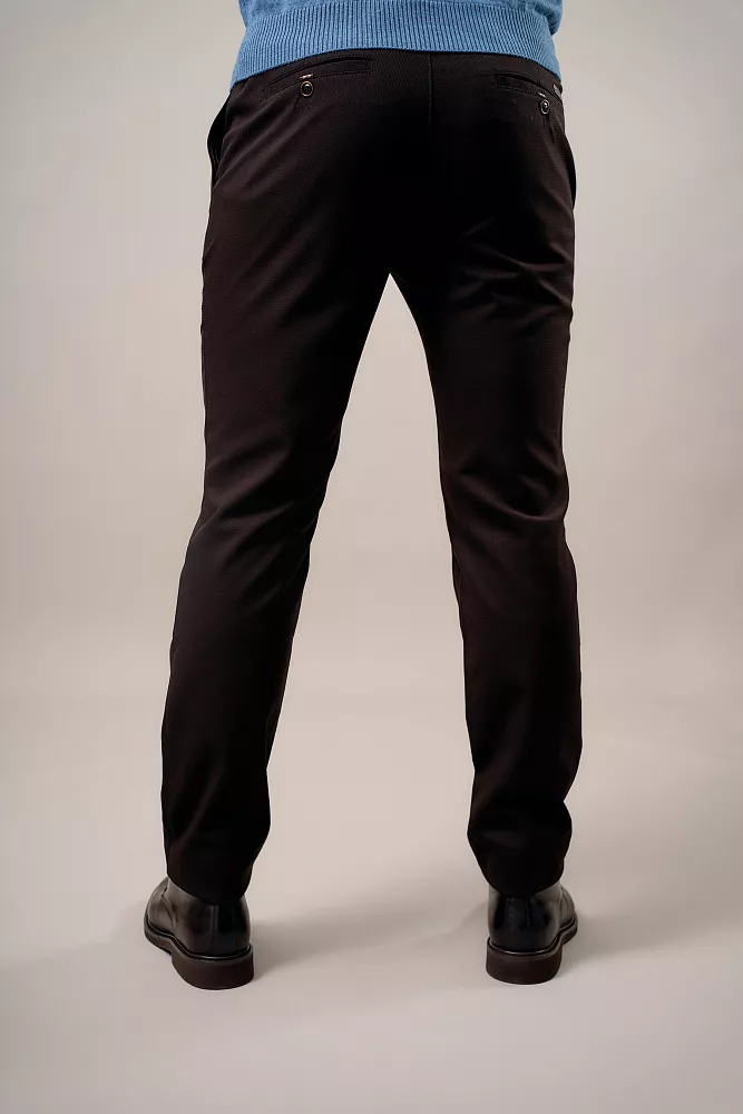 Коричневые брюки - идеальная альтернатива синей базе. Полуприлегающий крой подчеркивает фигуру, не сковывая движений, а удобная резинка по бокам пояса обеспечивает идеальную посадку без сдавливания. Отсутствие стрелок придает образу непринужденность и подходит для различных стилей. Приятная на ощупь ткань с мелкой фактурой добавляет изюминку. Смесовый материал гарантирует долговечность и сохраненность формы после стирки.