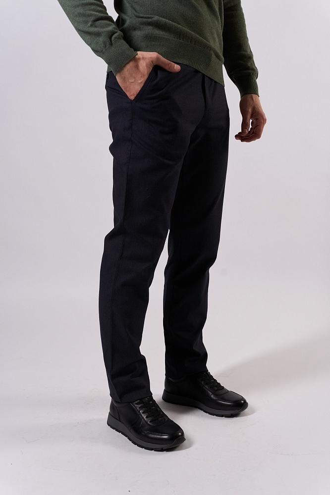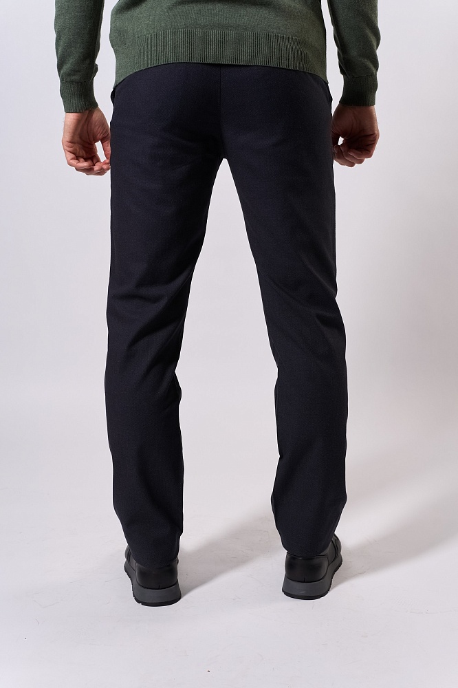 Элегантные повседневные брюки чёрного цвета — незаменимая часть мужского гардероба в прохладное время года. Прилегающий крой подчёркивает фигуру, не сковывая движений, а однотонный дизайн делает модель универсальной: она подойдёт как для неформальных встреч, так и для офисного дресс-кода в расслабленном стиле.