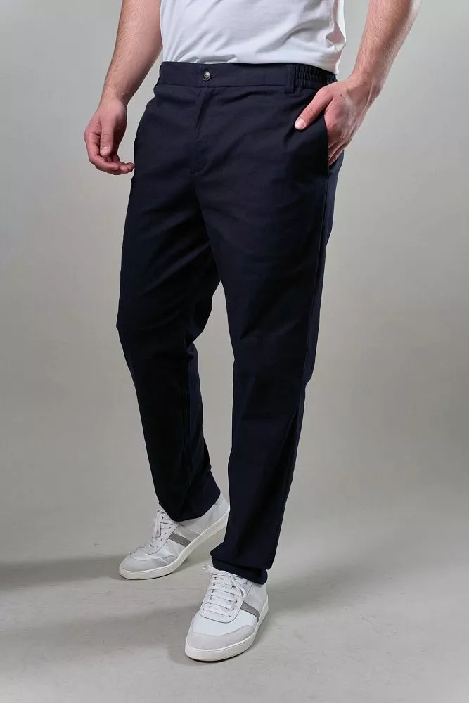 Эти синие брюки в стиле робы – воплощение комфорта и современности. Удобный крой и эластичная резинка на поясе обеспечивают идеальную посадку и свободу движений. Натуральная ткань приятна к телу и дарит ощущение легкости в течение всего дня. Сочетайте их с футболкой для расслабленного образа и создайте стильный комплект, дополнив рубашкой с тем же артикулом. Приобретая костюм целиком, вы экономите время на подборе идеального сочетания и получаете готовый стильный образ.