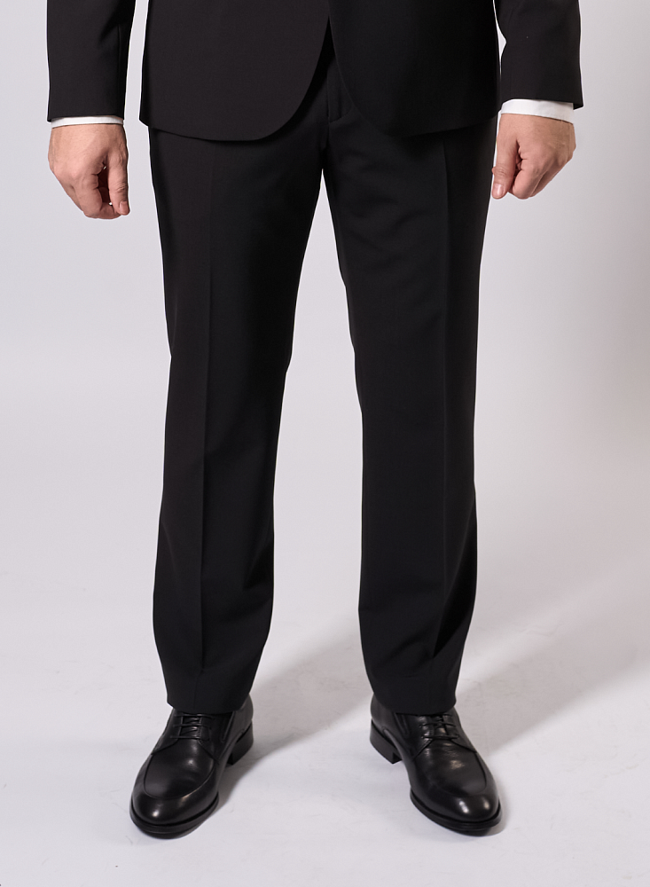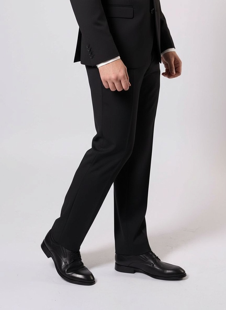 Классические чёрные брюки со стрелками — стильное и практичное решение для сезона весна–лето. Прилегающий крой подчёркивает фигуру, не сковывая движений, а однотонный дизайн делает модель универсальной: она подойдёт как для деловых встреч, так и для торжественных мероприятий. Брюки выполнены из качественной ткани (88% шерсти, 8% полиэстера, 4% эластана), которая обеспечивает комфорт в носке и отлично держит форму. Сочетайте с классическим пиджаком и лаконичной рубашкой для безупречного образа.