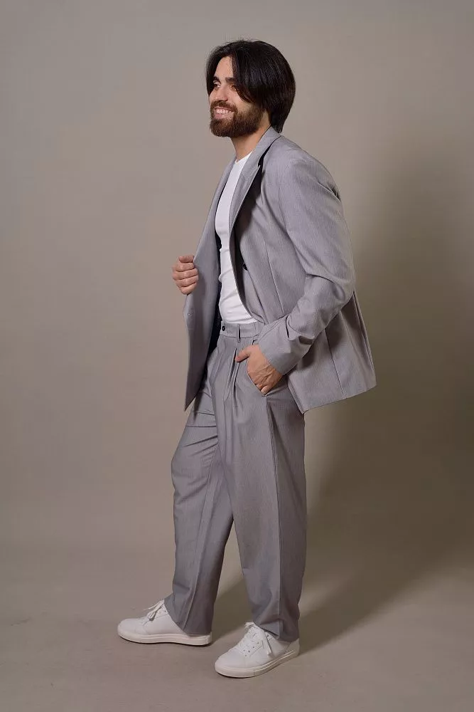 Создайте безупречный современный образ с этими оверсайз брюками светло-серого цвета. Уникальная застежка на 4 пуговицах со шнурком гарантирует идеальную посадку и максимальный комфорт. Свободный крой и стильные защипы спереди подчеркнут вашу индивидуальность и дарят ощущение легкости. Оверсайз силуэт – это не только тренд, но и максимальный комфорт на каждый день. Завершите свой образ, приобретя двубортный оверсайз пиджак с артикулом Oversize 118 Od\BB и соберите идеальный костюм.