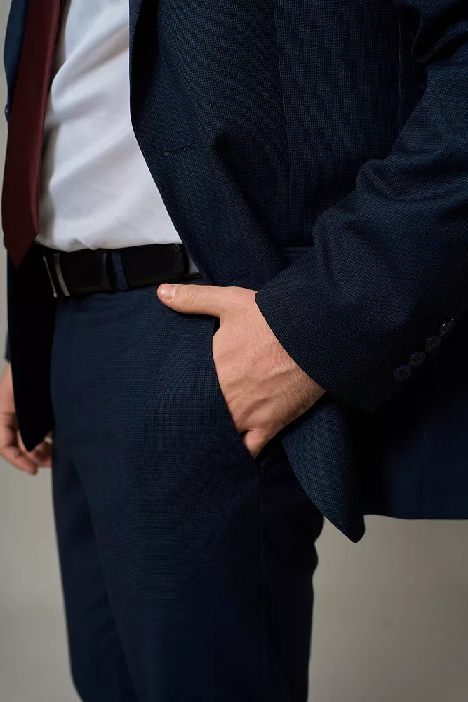 Этот элегантный синий костюм - идеальный выбор для уверенного в себе современного мужчины. Благодаря смесовой ткани, он обеспечивает комфорт и свободу движений в течение всего дня. Стильный крой подчеркнет достоинства вашей фигуры. Универсальный синий цвет легко сочетается с разнообразными рубашками и аксессуарами, позволяя создавать разные образы. Этот костюм подходит как для деловых встреч, так и для торжественных мероприятий, гарантируя вам восхищение окружающими.