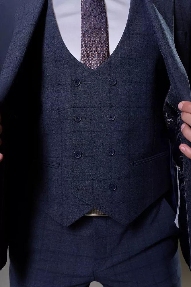 Создайте выдающийся образ, который мгновенно притягивает взгляды, с нашим синим костюмом тройкой в крупную клетку. Оцените элегантность принта в серых и коричневых тонах, который добавляет уникальности вашему стилю. Двубортный жилет идеально подчеркнет вашу фигуру благодаря регулировке по талии. Ощутите исключительный комфорт прилегающего кроя, который обеспечивает свободу движений в течение всего дня. Смесовый состав с шерстью гарантирует превосходную воздухопроницаемость и долговечность. Добавление вискозы и лайкры обеспечивает мягкость ткани и уменьшает сминаемость, сохраняя ваш безупречный вид.