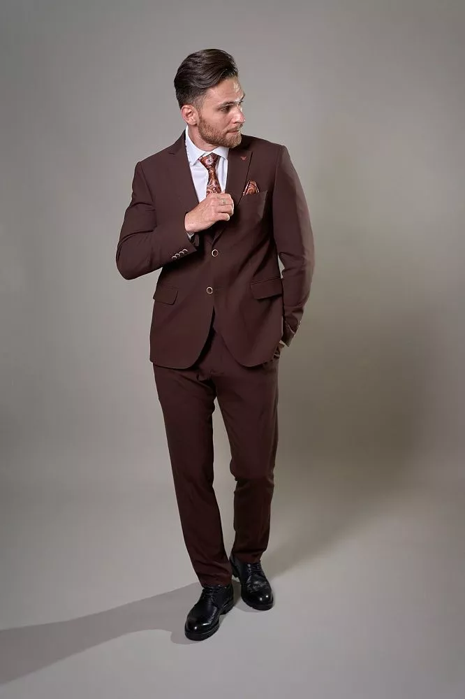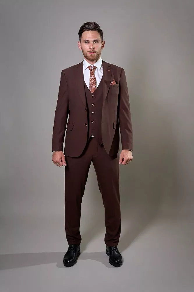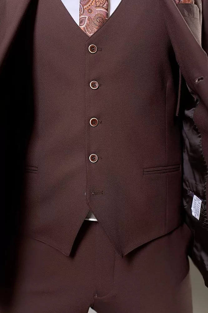 Создайте неповторимый и запоминающийся образ с нашим коричневым костюмом-тройкой из фактурной ткани. Прилегающий крой идеально подчеркнет вашу фигуру, гарантируя современный и элегантный вид. Жилетка с функцией коррекции по талии обеспечит безупречную посадку, добавляя уверенности. Высокое содержание хлопка и вискозы дарит исключительный комфорт и позволяет коже дышать в течение всего дня. Добавление эластана обеспечивает превосходную свободу движений. Этот костюм – идеальный выбор для тех, кто ценит стиль, комфорт и универсальность.