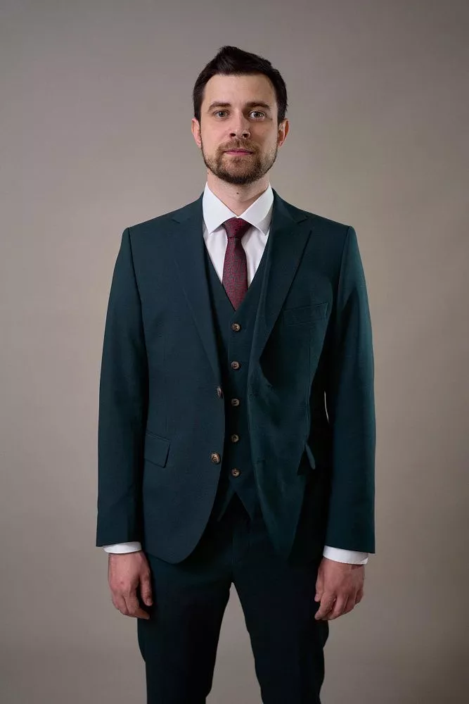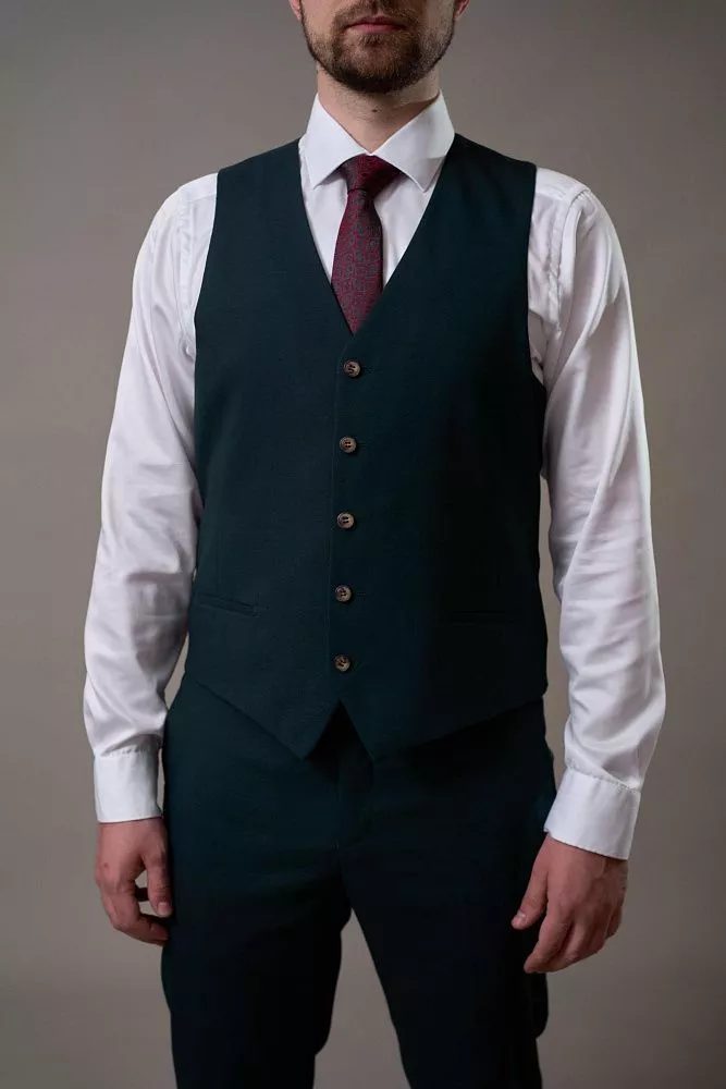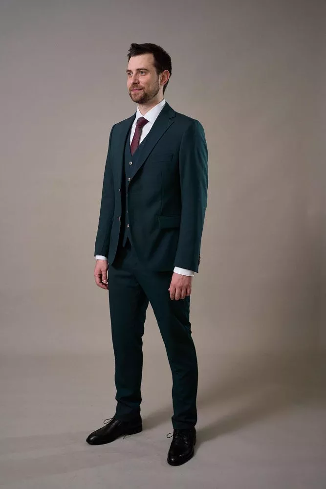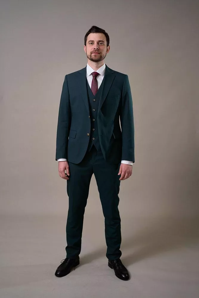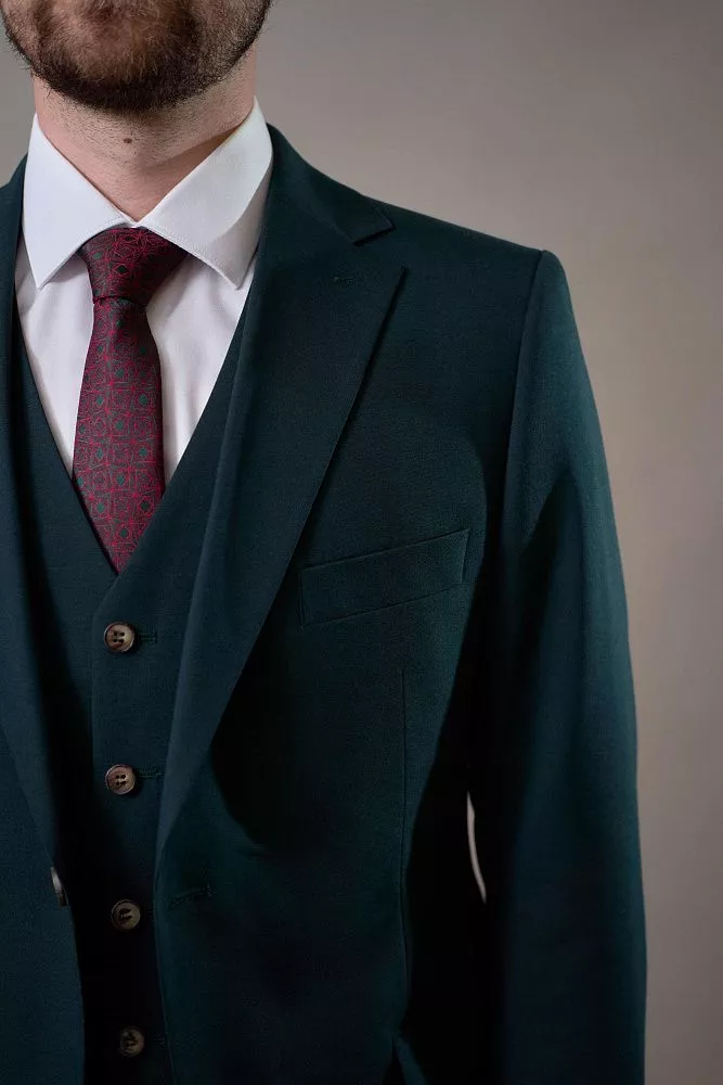 Создайте неповторимый образ со стильным костюмом-тройкой изумрудного цвета! Этот роскошный костюм, состоящий из пиджака, брюк и жилета, станет идеальным выбором для важных встреч, торжественных мероприятий или деловых переговоров. Изумрудный цвет – это всегда актуально и стильно, а смесовый материал обеспечит комфорт и безупречный внешний вид на протяжении всего дня.