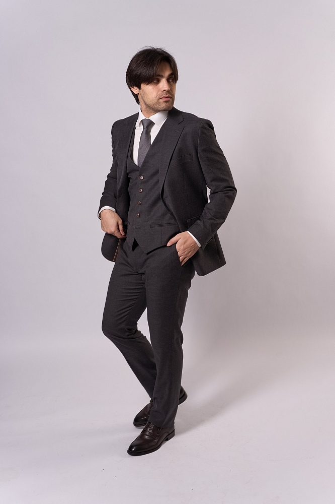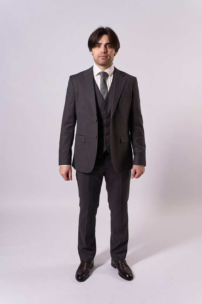 Элегантный серый костюм-тройка приталенного кроя — идеальный выбор для сезона весна–лето. Сочетание 55% полиэстера, 32% вискозы, 10% шерсти и 3% эластана обеспечивает комфорт, лёгкость и отличную форму. Классический дизайн и однотонный оттенок делают модель универсальной: подойдёт как для деловых встреч, так и для торжественных мероприятий. Подчеркнёт стиль и статус, не сковывая движений.