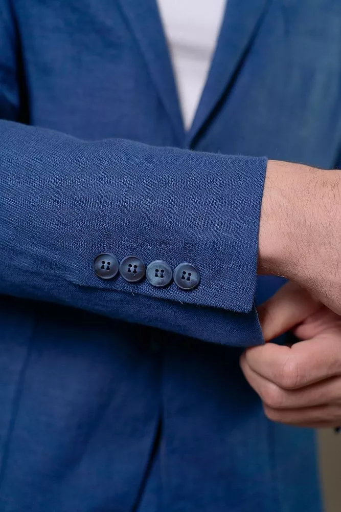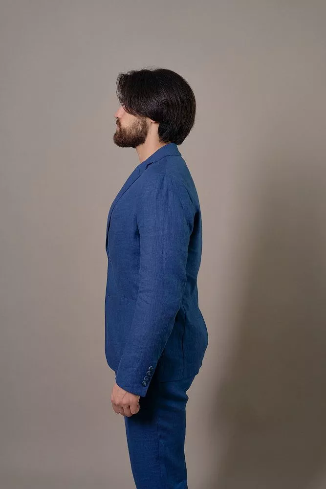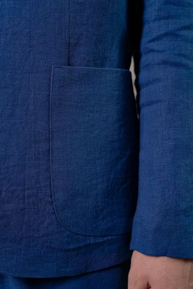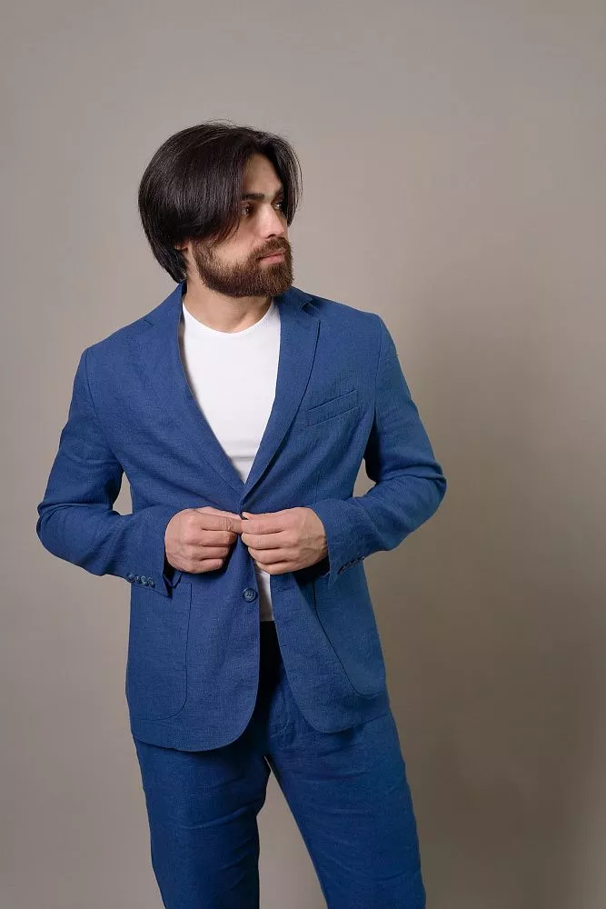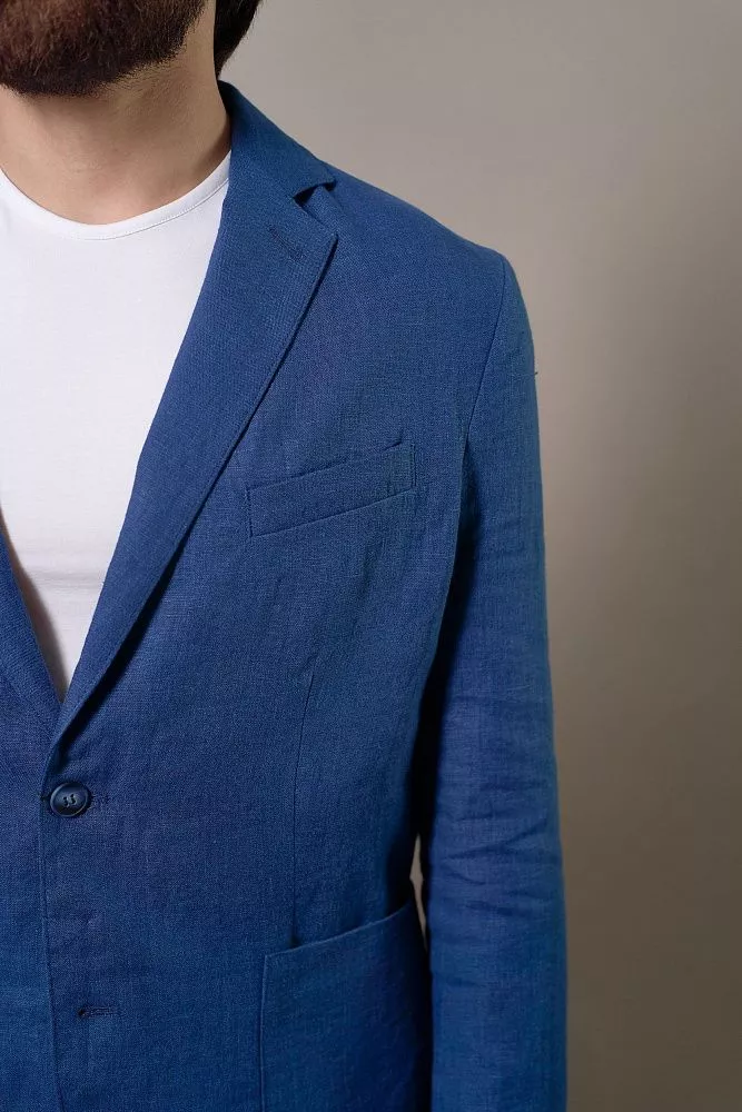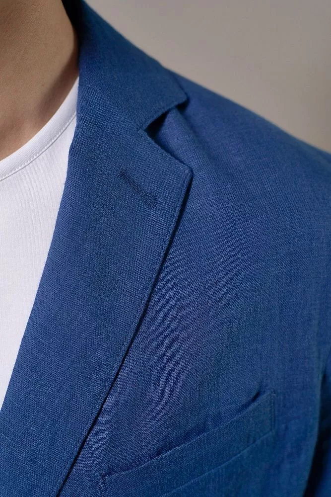 Освежите свой гардероб с этим пиджаком насыщенного василькового цвета. Полуподкладка обеспечивает лёгкость и отличную воздухопроницаемость, а полуприлегающий силуэт создает современный и выверенный образ. Накладные карманы придают пиджаку непринужденный шик, а ткань с имитацией льна добавит нотку вальяжности. Смесовый состав из хлопка и полиэстера гарантирует долговечность и легкость в уходе. Вы легко сможете создать завершенный образ, дополнив его подходящими брюки из этой же ткани с артикулом 0357 ALLURE.