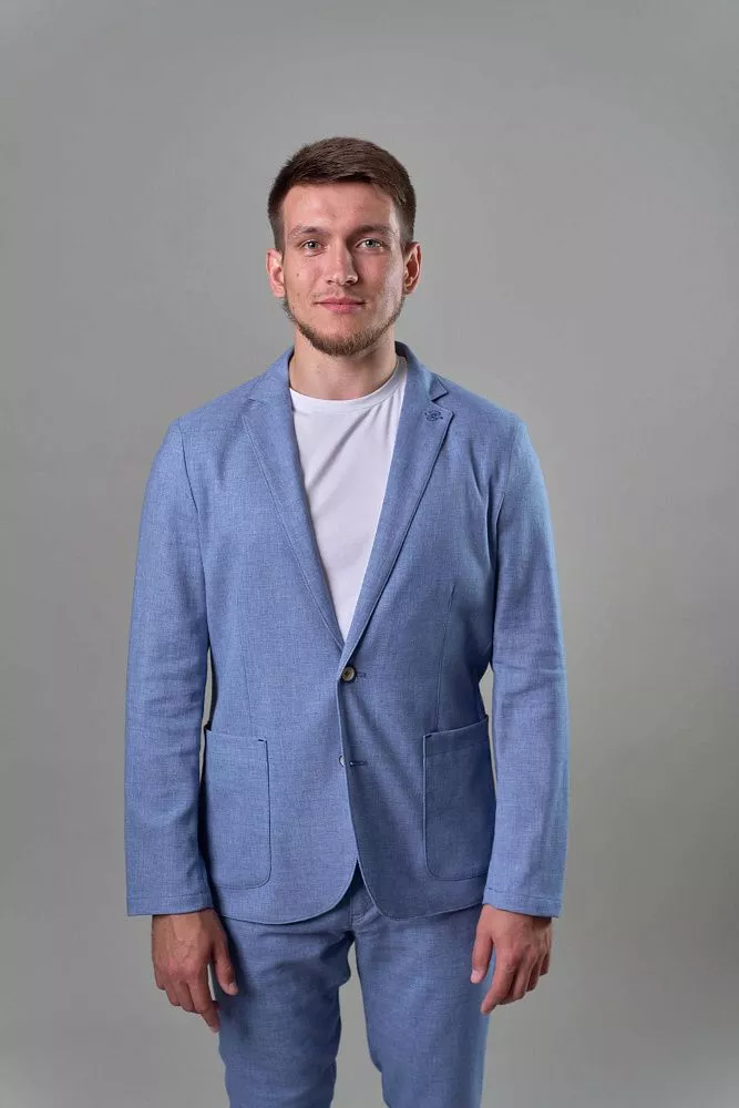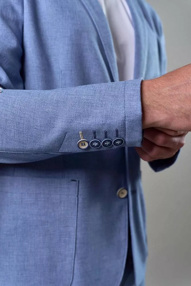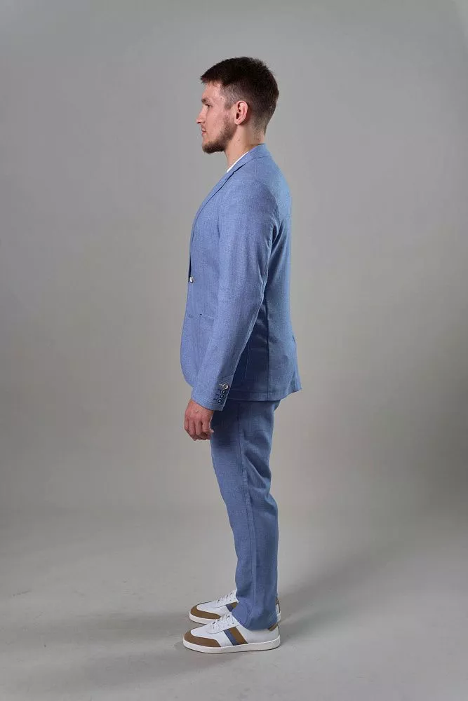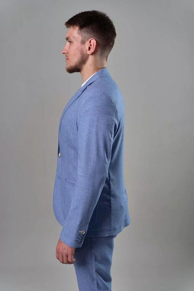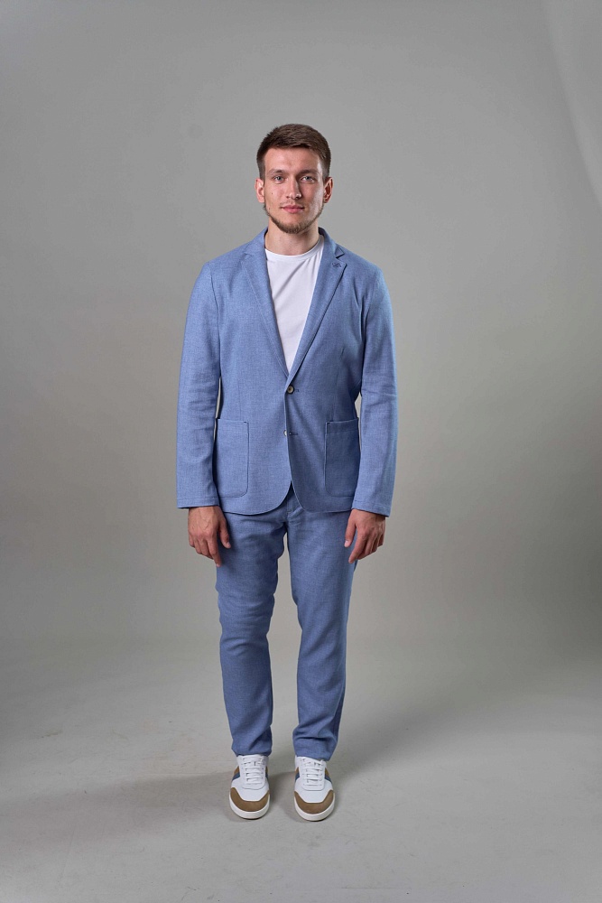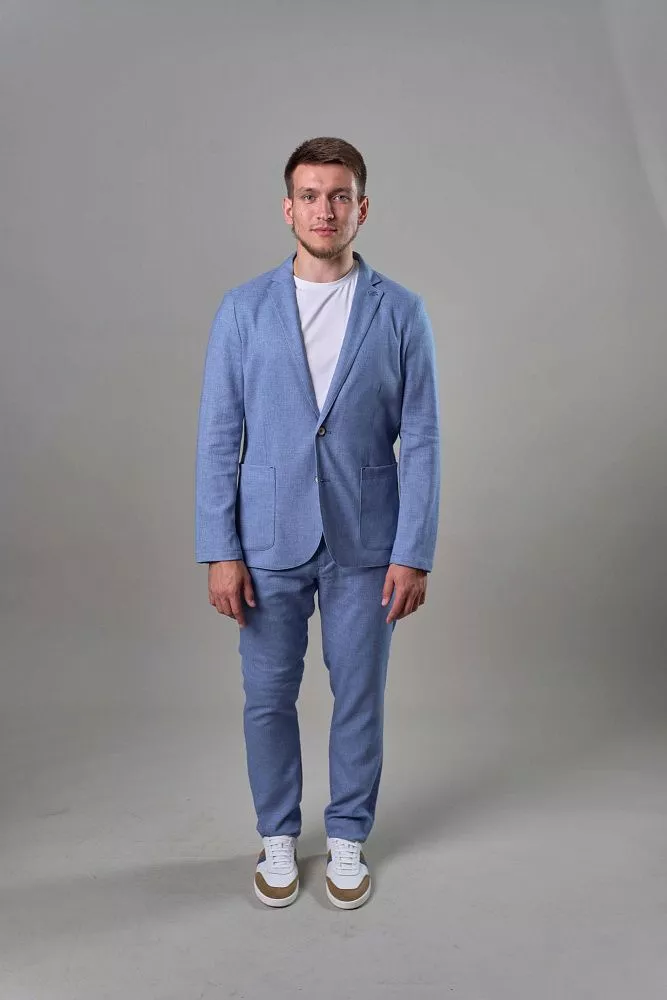 Голубой пиджак – стильное решение для летнего образа. Полуприталенный силуэт идеально подчеркнет вашу фигуру, создавая современный и утонченный образ. Благодаря полуподкладу, пиджак отлично дышит и обеспечивает комфорт даже в теплую погоду. Универсальный голубой цвет позволит легко сочетать его с различными элементами гардероба, создавая стильные и запоминающиеся образы. Для завершенного образа вы можете приобрести брюки из такой же ткани с артикулом Дейли, создав безупречный костюм, который подчеркнет ваш вкус и чувство стиля. Наслаждайтесь комфортом и элегантностью в каждой детали.