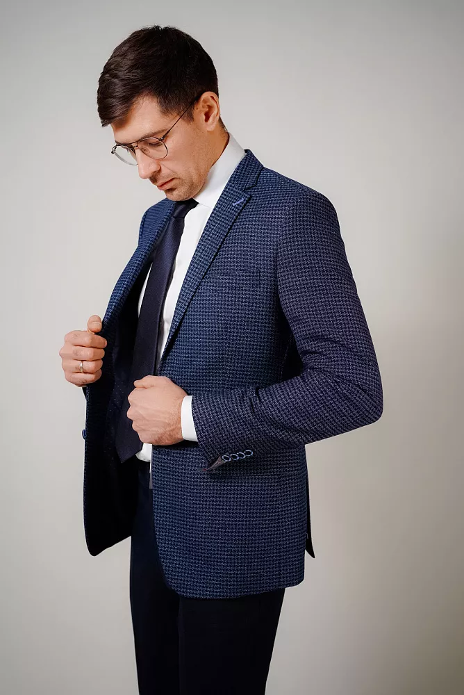 Пиджак мужской синий, голубой в клетку VALENTI 5481-VC-35S