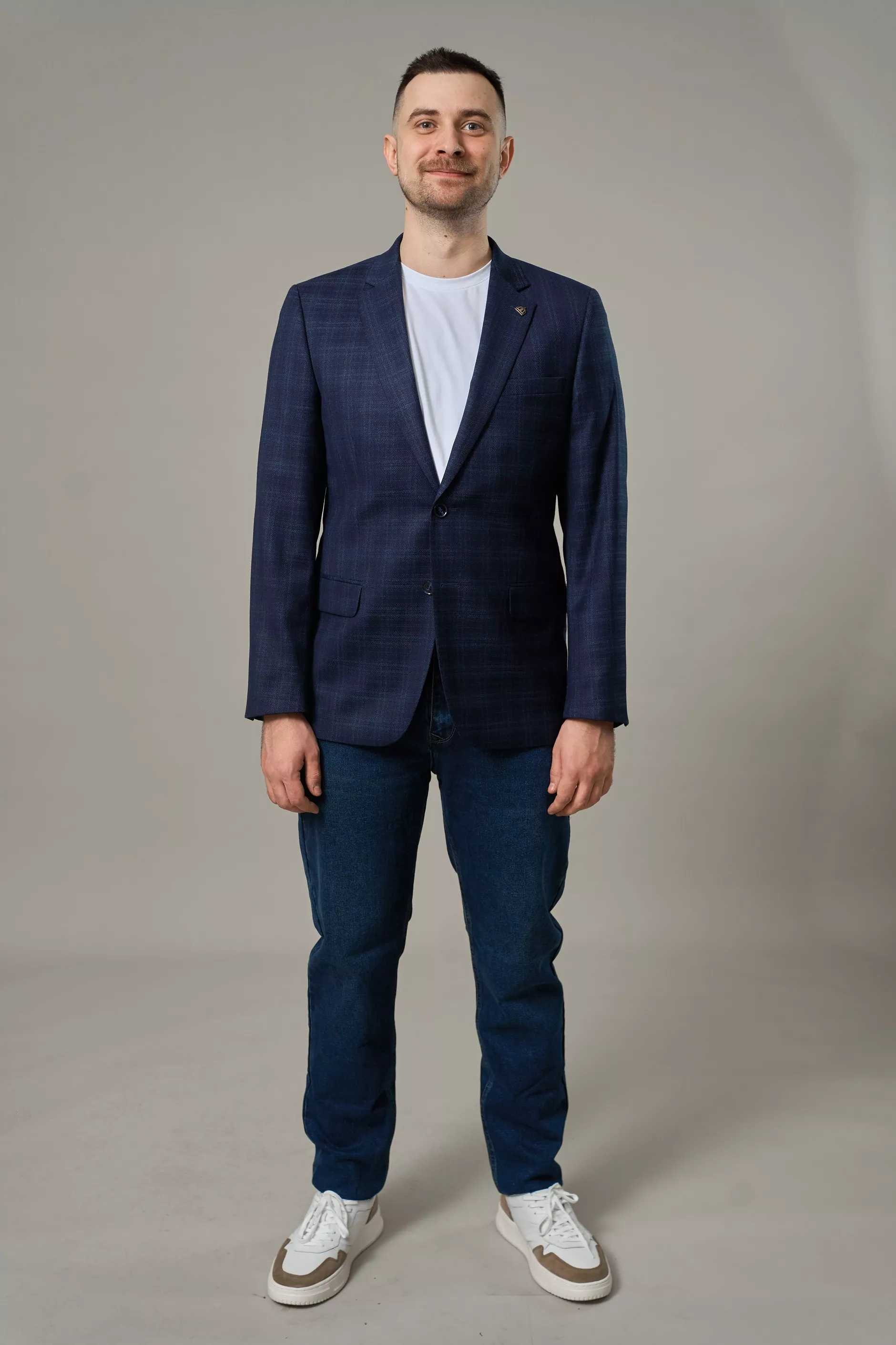Этот стильный пиджак полуприталенного кроя синего цвета в клетку добавит вашему образу нотку элегантности и индивидуальности, выделяя вас из толпы. Смесовая ткань обеспечивает комфорт и свободу движений, позволяя чувствовать себя уверенно в течение всего дня. Классический крой делает пиджак универсальным, подходящим как для деловых встреч, так и для неформальных мероприятий, расширяя возможности вашего гардероба. Эта практичная и стильная вещь станет выгодным приобретением, служа вам долгое время благодаря износостойкости материала.