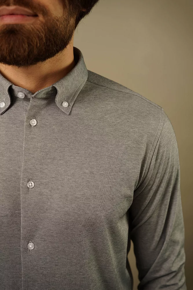 Сстильная мужская рубашка серого цвета с меланжевым принтом – идеальный выбор для тех, кто ценит комфорт и свободу движений. Мягкая трикотажная ткань обеспечит вам приятные тактильные ощущения и позволит коже дышать, гарантируя комфорт на весь день. Удобный крой и эластичная трикотажная ткань подарит вам ощущение полной свободы движений, не сковывая вас в течение дня, будь то активная работа или отдых. Стильный меланжевый принт добавляет рубашке изюминку и поможет вам выделиться из толпы, создавая неповторимый образ. Эта рубашка идеально сочетается с джинсами для создания непринужденного повседневного образа, делая ваш образ стильным и современным.