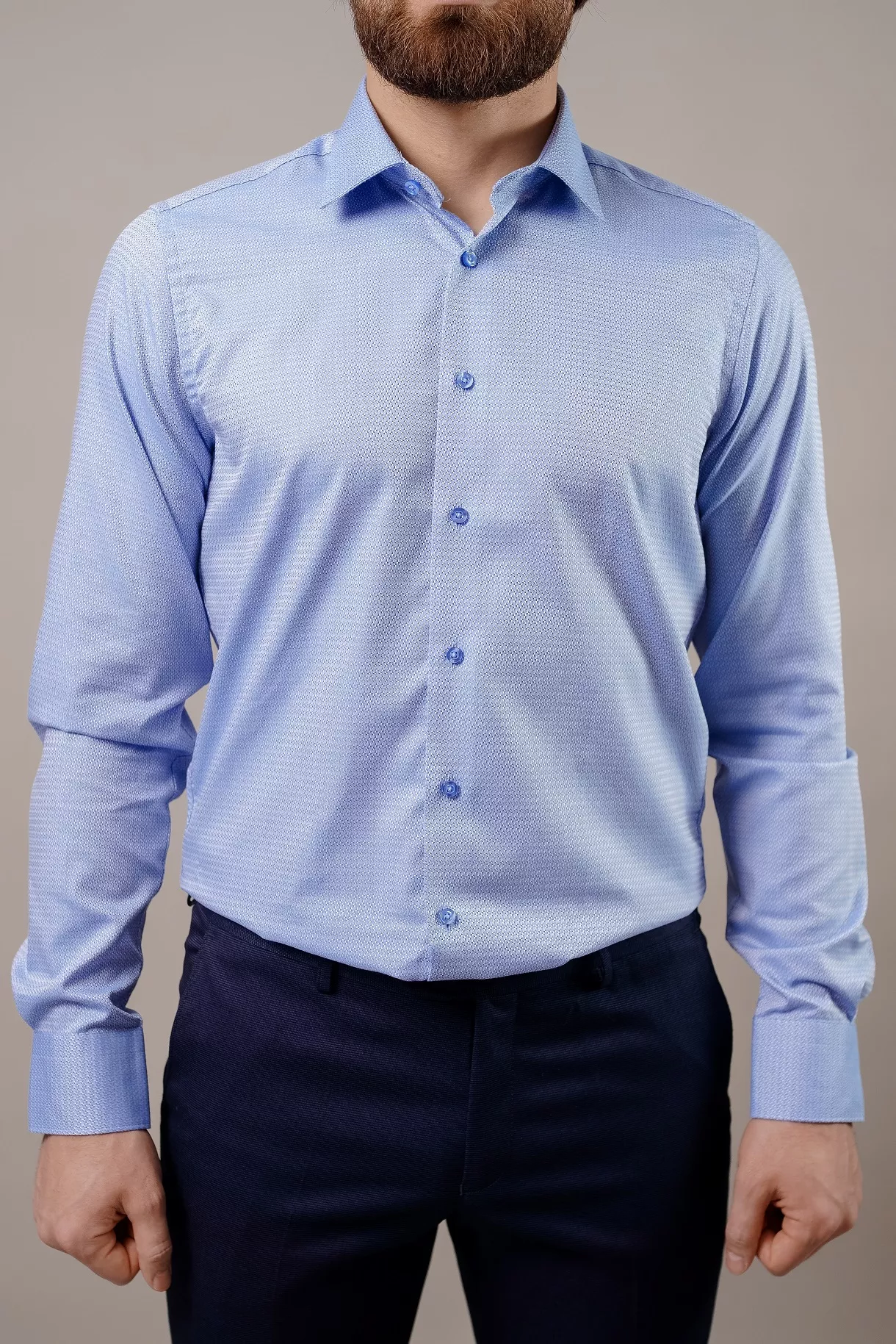 Приталенный силуэт, классический воротник и пуговицы в тон создают элегантный образ. Дышащий натуральный материал обеспечивает комфорт на весь день, делая рубашку универсальной. Голубой цвет с фактурой в виде объемных ромбов идеально подойдет для классических образов, в которых важна каждая деталь. Рубашки бренда Mario Machardi практически не нужно гладить, ведь после стирки и высыхания они меньше мнутся и не деформируются, что значительно упрощает уход за ней. Для достижения наилучшего эффекта, достаточно рубашку стирать с минимальным отжимом и вывешивать на широкие плечики, чтобы стекла лишняя влага и тогда под собственным весом все заломы разгладятся самостоятельно.