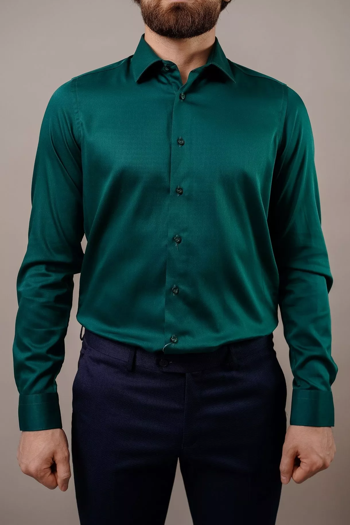 Приталенный силуэт, классический воротник и пуговицы в тон создают элегантный образ. Дышащий натуральный материал обеспечивает комфорт на весь день, делая рубашку универсальной. Насыщенный изумрудный цвет придаст вашему образу загадочности и подчеркнет вашу индивидуальность. Рубашки бренда Mario Machardi практически не нужно гладить, ведь после стирки и высыхания они меньше мнутся и не деформируются, что значительно упрощает уход за ней. Для достижения наилучшего эффекта, достаточно рубашку стирать с минимальным отжимом и вывешивать на широкие плечики, чтобы стекла лишняя влага и тогда под собственным весом все заломы разгладятся самостоятельно.