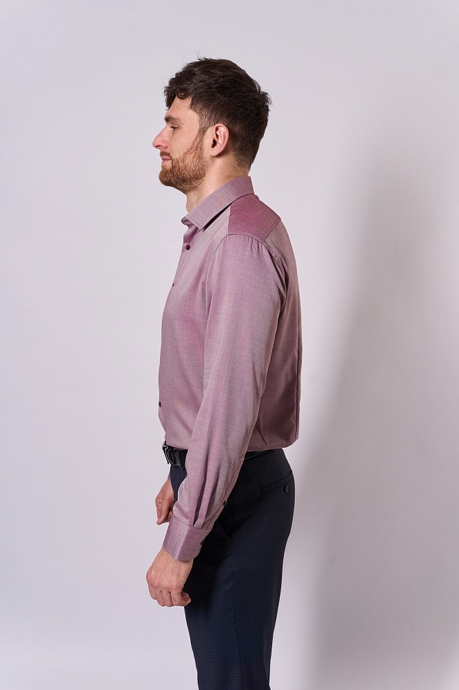 Элегантная рубашка бордового оттенка с перламутровым эффектом ткани — стильное решение для деловых и повседневных образов. Модель полуприталенного кроя подчёркивает фигуру, не сковывая движений. Состав ткани (55% бамбук, 25% хлопок, 20% микрополиэстер) обеспечивает комфорт в течение всего дня: материал дышит и сохраняет форму. Универсальный цвет и лаконичный дизайн позволяют сочетать рубашку с классическими брюками или джинсами. Добавьте нотку изысканности в свой гардероб!
