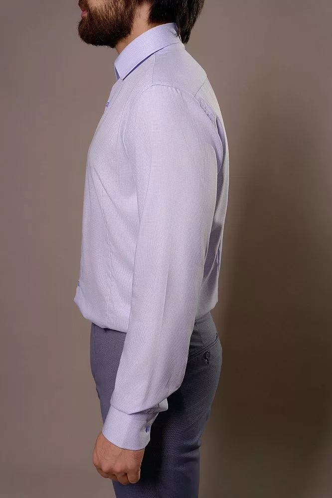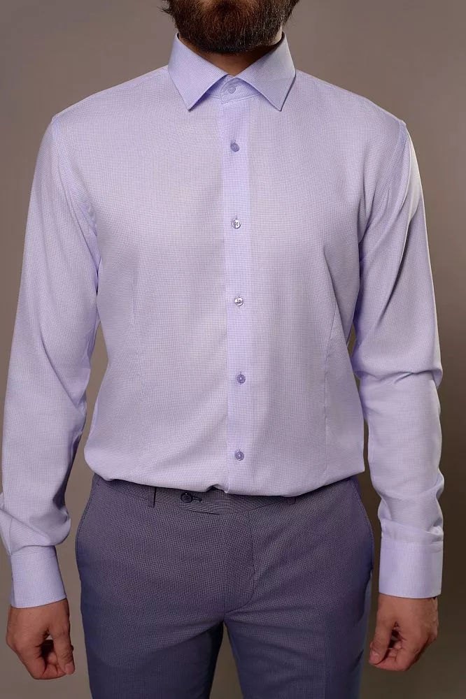 Освежите свой гардероб этой элегантной рубашкой с уникальным фиалковым микропринтом, который придаст вашему стилю изысканность. Почувствуйте исключительный комфорт благодаря ее легкой и шелковистой ткани из бамбука и хлопка, идеальной для ношения весь день. Приталенный крой идеально подчеркнет вашу фигуру, а состав с микрополиэстером обеспечит превосходную износостойкость и простоту в уходе.