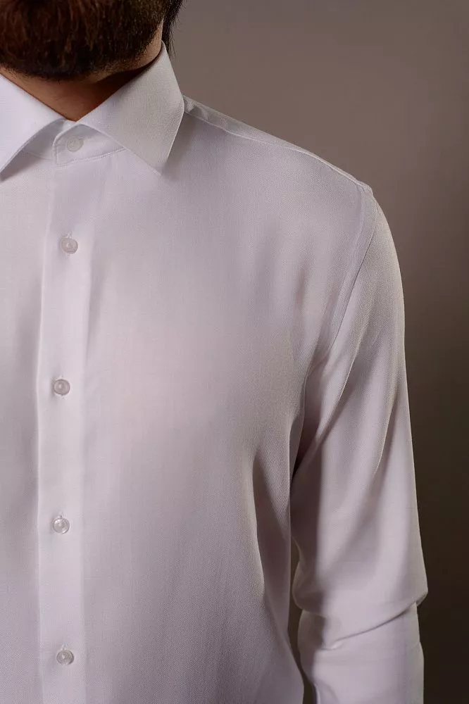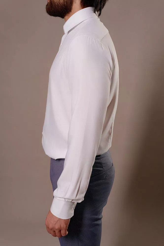 Создайте безупречный образ с нашей белой рубашкой с длинным рукавом. Ее фактурная, шелковистая ткань дарит ощущение роскоши и мягкости, который вы будете чувствовать весь день. Приталенный крой элегантно подчеркивает силуэт, а микрополиэстер в составе гарантирует легкий уход и долговечность.
