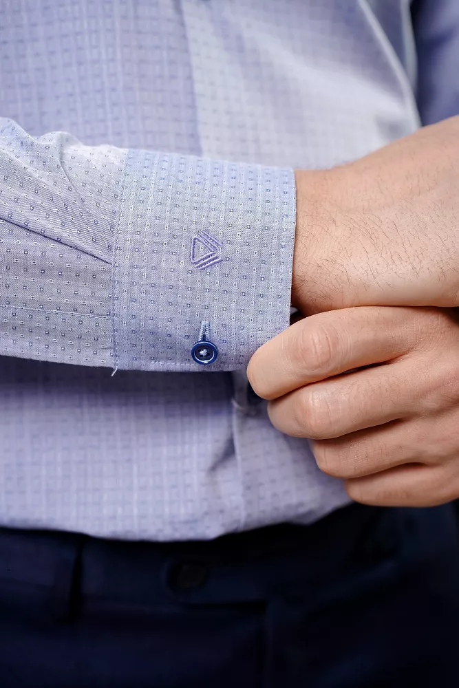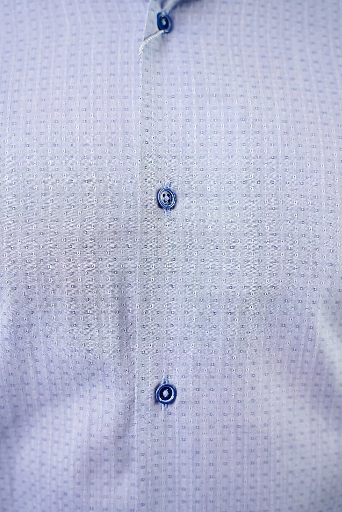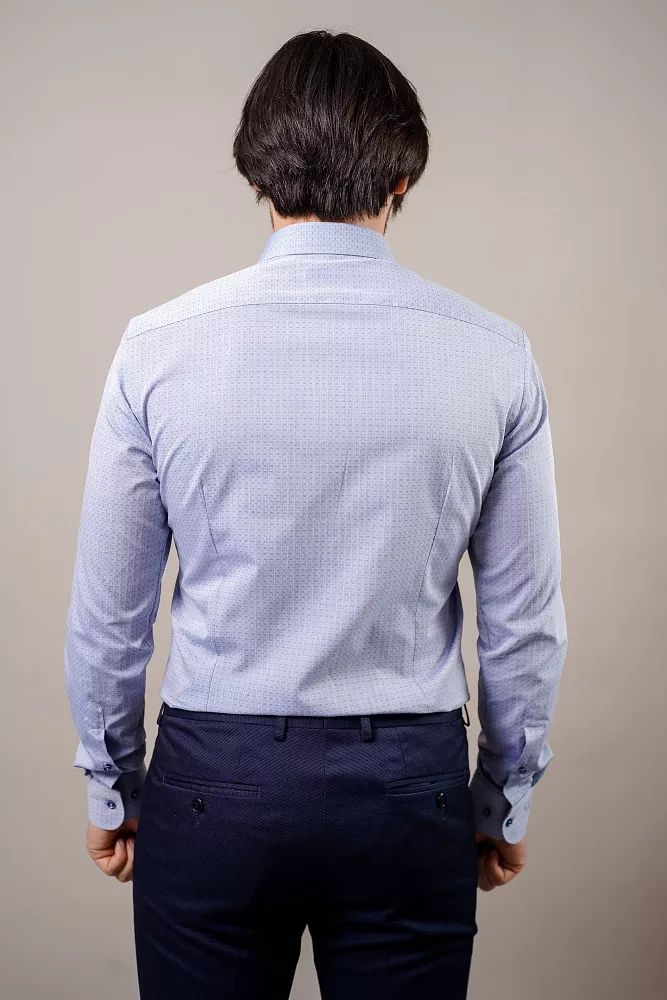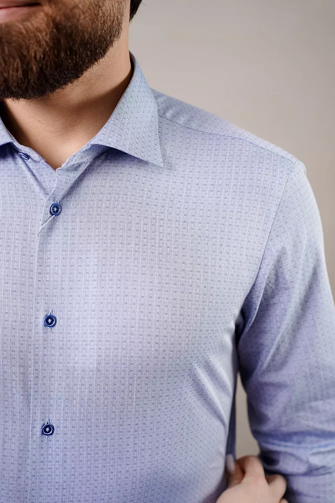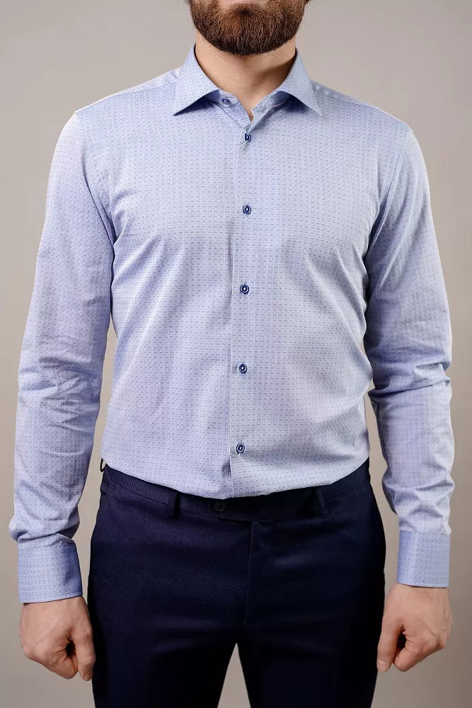 Приталенный силуэт и безупречный стиль. Эта рубашка с приталенным кроем идеально садится по фигуре, а классический воротник и необычные пуговицы в тон добавляют элегантности. Фактура ткани составляет еле заметный узор в виде темных и светлых точек, придавая стальной отлив. Дышащий материал гарантирует комфорт весь день. Рубашка выполнена в технологии легкого ухода, что ускорит процесс глажки.
