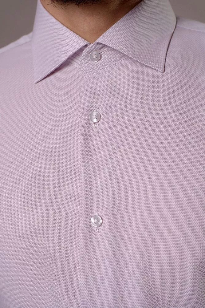 Придайте своему гардеробу нотку утонченности с этой классической рубашкой. Ее элегантный микропринт в пыльно-розовом и белом цветах сделает ваш образ неповторимым. Сочетание хлопка и полиэстера гарантирует исключительный комфорт и легкость в уходе, экономя ваше время. Приталенный крой идеально подчеркнет достоинства фигуры, обеспечивая безупречный и современный силуэт.