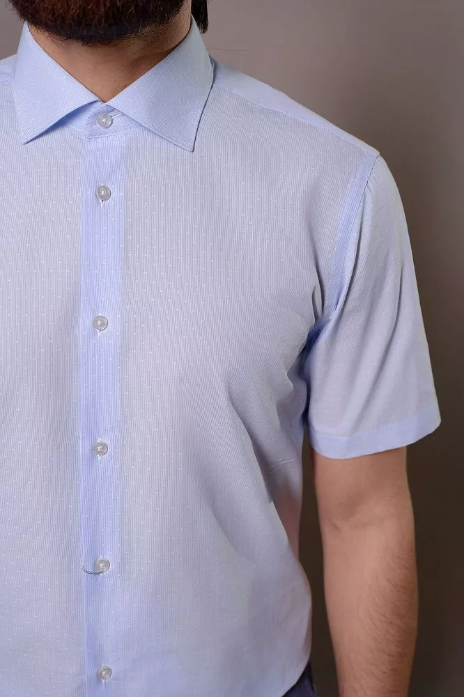 Освежите свой классический образ с этой элегантной голубой рубашкой, чей микропринт в виде белых точек добавит утонченности и индивидуальности. Сочетание хлопка и полиэстера гарантирует превосходную воздухопроницаемость для комфорта в течение всего дня. Приталенный крой идеально подчеркнет вашу фигуру, создавая современный силуэт, который безупречно смотрится как в офисе, так и вне его.