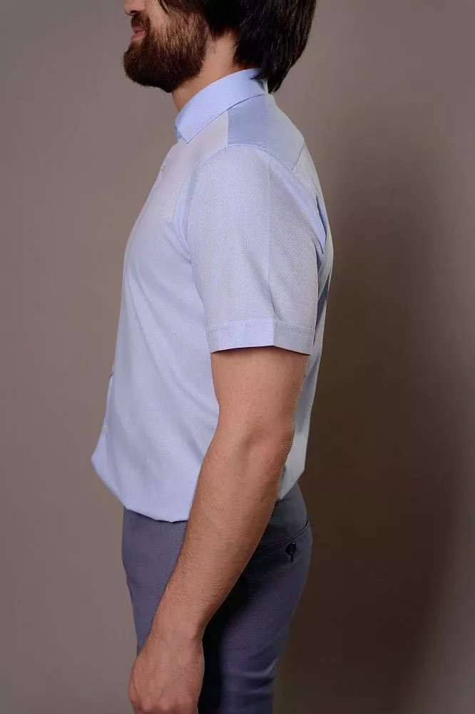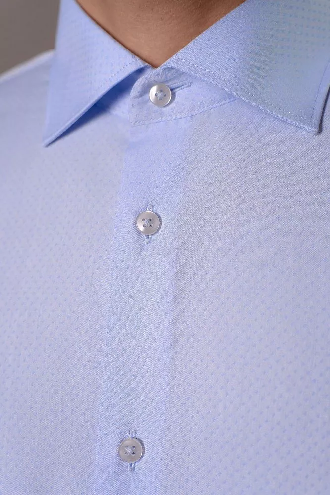 Оцените свежесть и утонченность вашего образа с этой классической голубой рубашкой, чья уникальная фактура мгновенно выделит вас из толпы. Сочетание хлопка и полиэстера обеспечивает дышащий комфорт на весь день и легкость в уходе, экономя ваше время. Приталенный крой идеально подчеркнет вашу фигуру, создавая современный и безупречный силуэт, подходящий для любого случая.