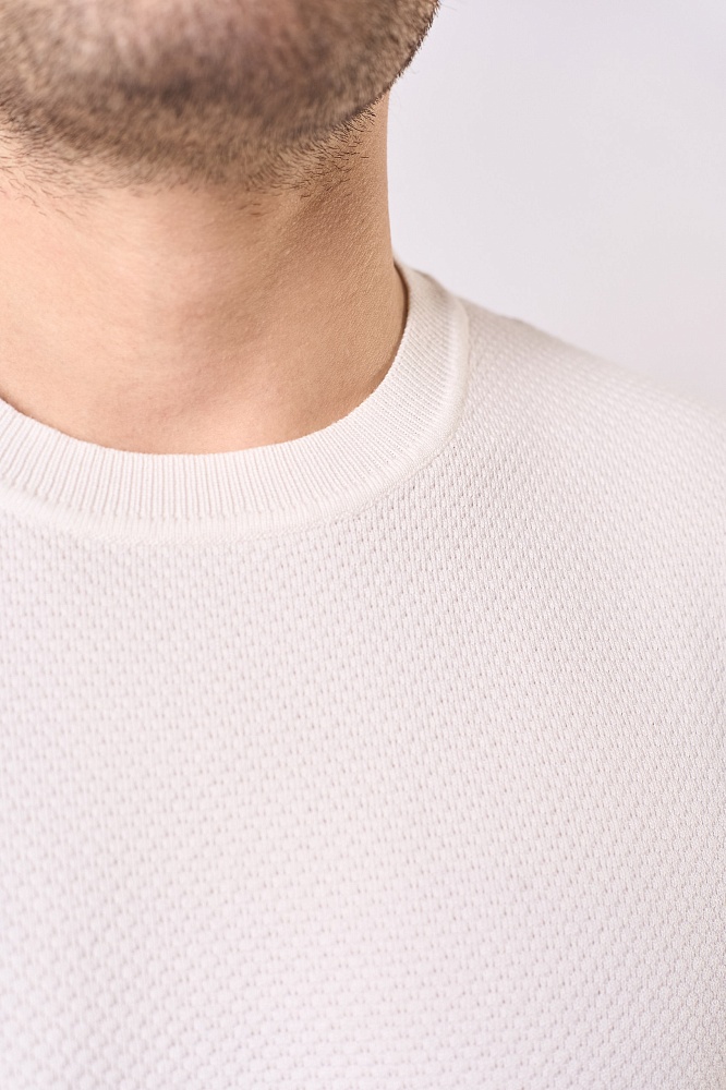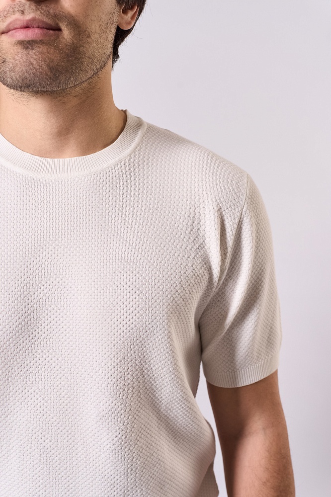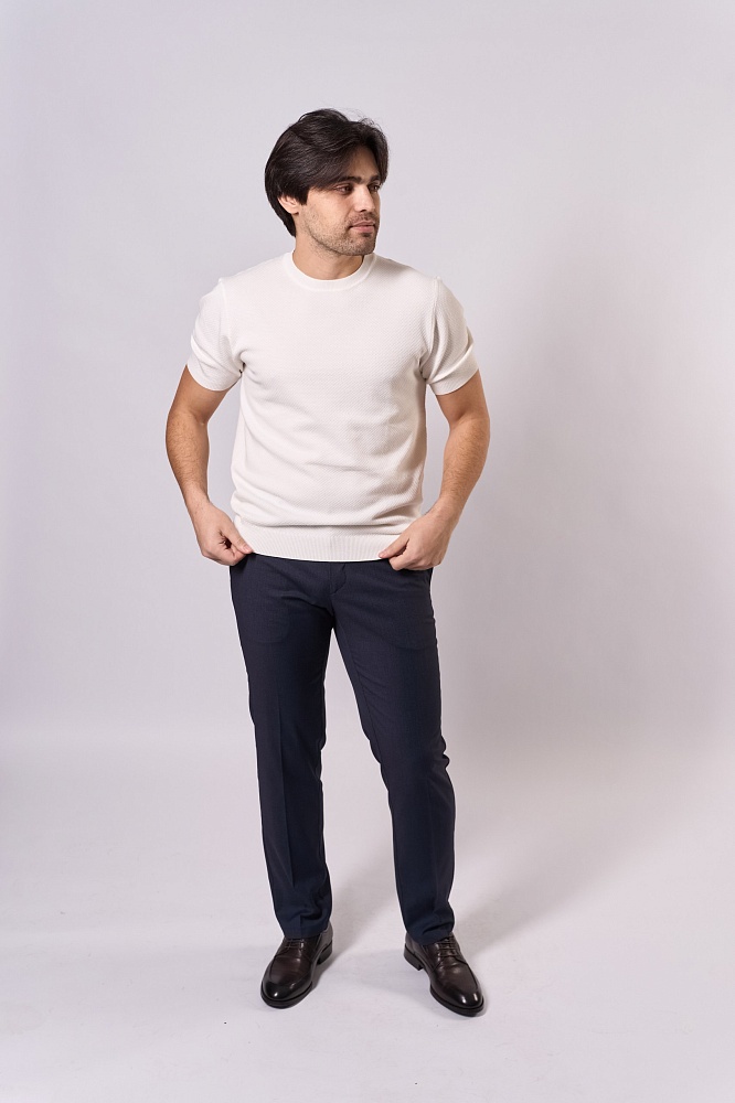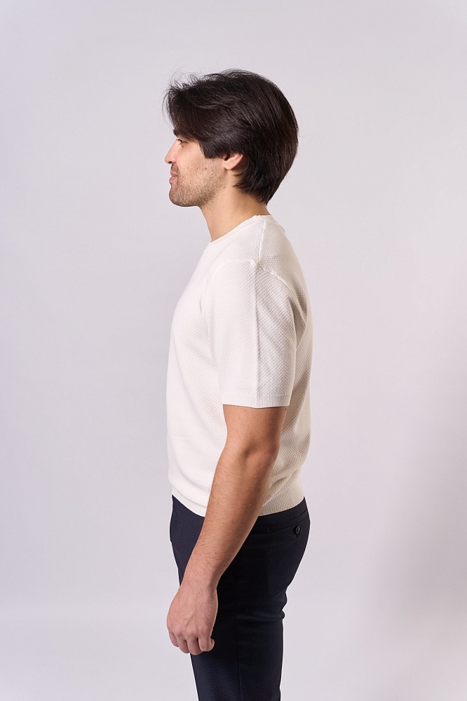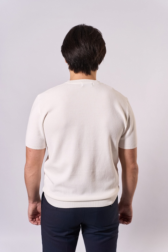 Стильная мужская футболка для весны и лета: полуприталенный крой, короткий рукав, однотонный фактурный дизайн в классическом белом цвете. Модель выполнена из мягкой и прочной ткани (70% вискоза, 30% полиэстер), которая отлично дышит и сохраняет форму. Универсальный вариант для повседневного гардероба — легко сочетается с джинсами, чиносами или шортами. Комфортная посадка подчёркивает фигуру, не сковывая движений.