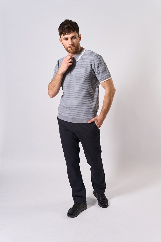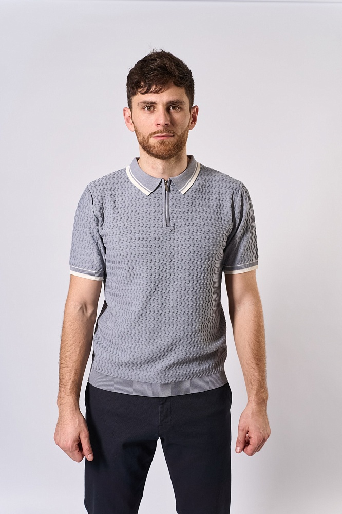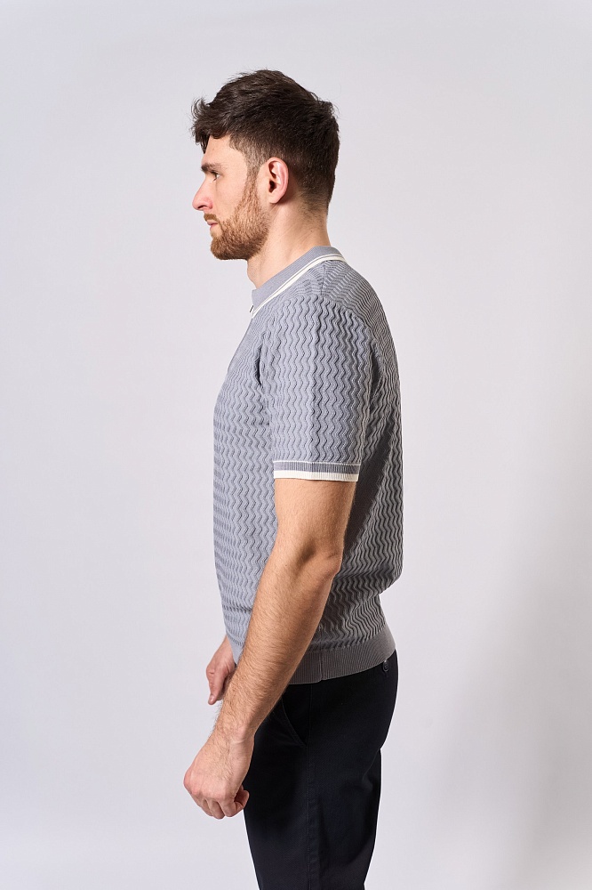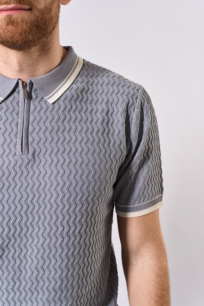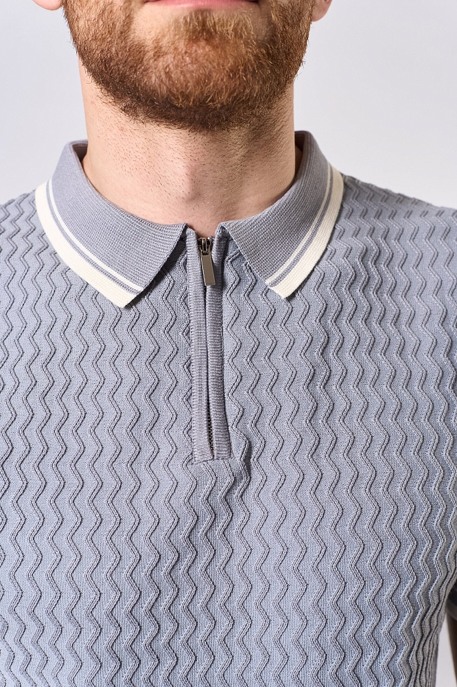 Голубое поло с коротким рукавом и оригинальным рисунком — практичная и стильная находка для сезона весна–лето. Полуприталенный крой подчёркивает фигуру, не сковывая движений, а сочетание полиэстера (70%) и вискозы (30%) обеспечивает комфорт в носке и отличную воздухопроницаемость. Модель с застёжкой-молнией и контрастной отделкой воротника и манжет выглядит лаконично и современно. Идеально подойдёт для повседневных образов — сочетайте с джинсами или чиносами для расслабленного стиля.