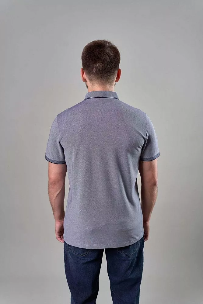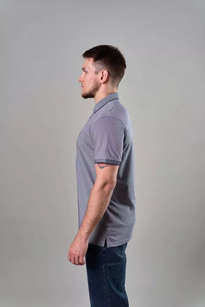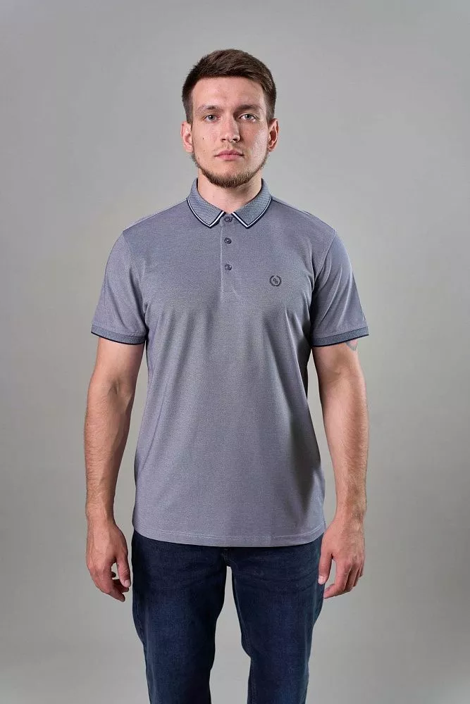 Серо-синяя футболка-поло с выработкой – отличный способ добавить текстуры и стиля в ваш образ. Полуприталенный силуэт выгодно подчеркивает фигуру, не сковывая движений. Контрастная отделка рукавов и воротника придает футболке завершенный и аккуратный вид. Дышащая ткань обеспечит комфорт в течение всего дня. Сочетайте ее с джинсами, чиносами или шортами для создания универсального и стильного образа.