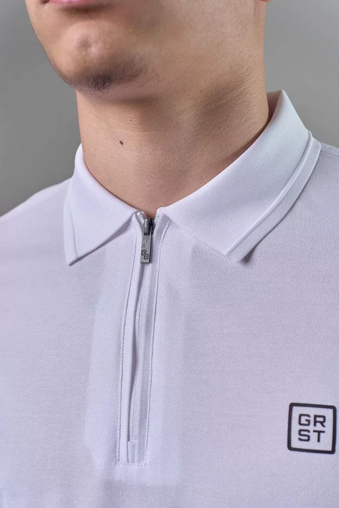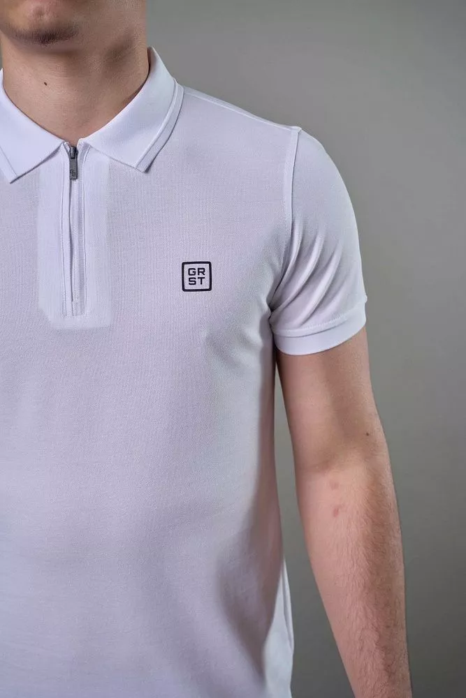 Эта белая футболка-поло на замке – современное переосмысление классики. Полуприталенный силуэт подчеркнет вашу фигуру, создавая элегантный и подтянутый образ. Удобный замок добавляет оригинальности и позволяет регулировать вырез по своему вкусу. Дышащая ткань обеспечит комфорт в течение всего дня, позволяя чувствовать себя уверенно в любой ситуации. Эта футболка-поло идеально подходит для создания стильных и непринужденных образов, добавляя нотку современного шика в ваш гардероб.