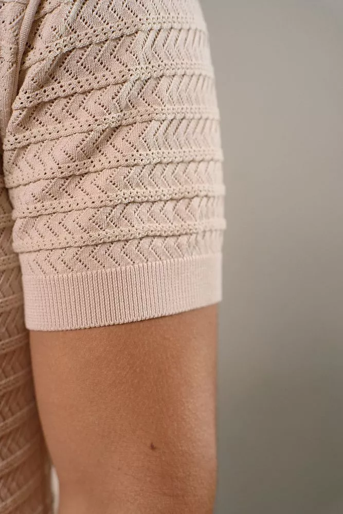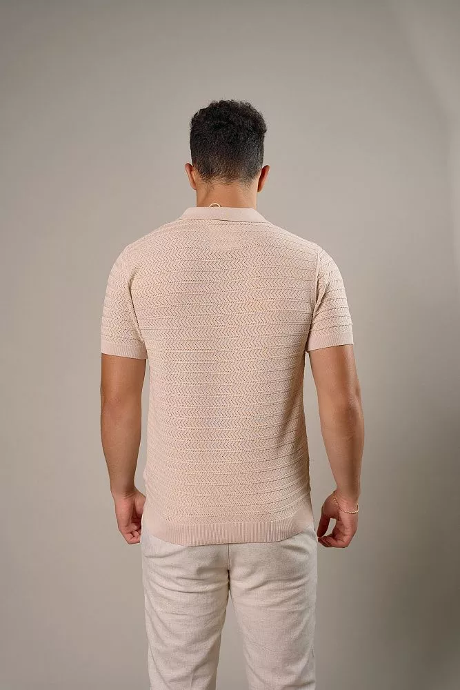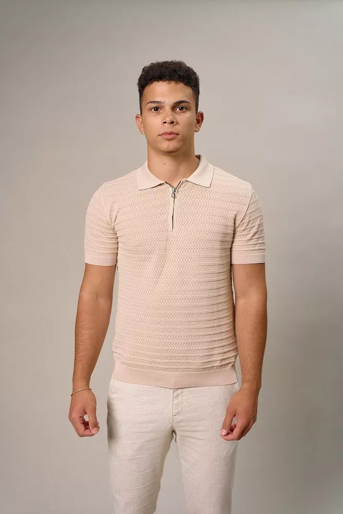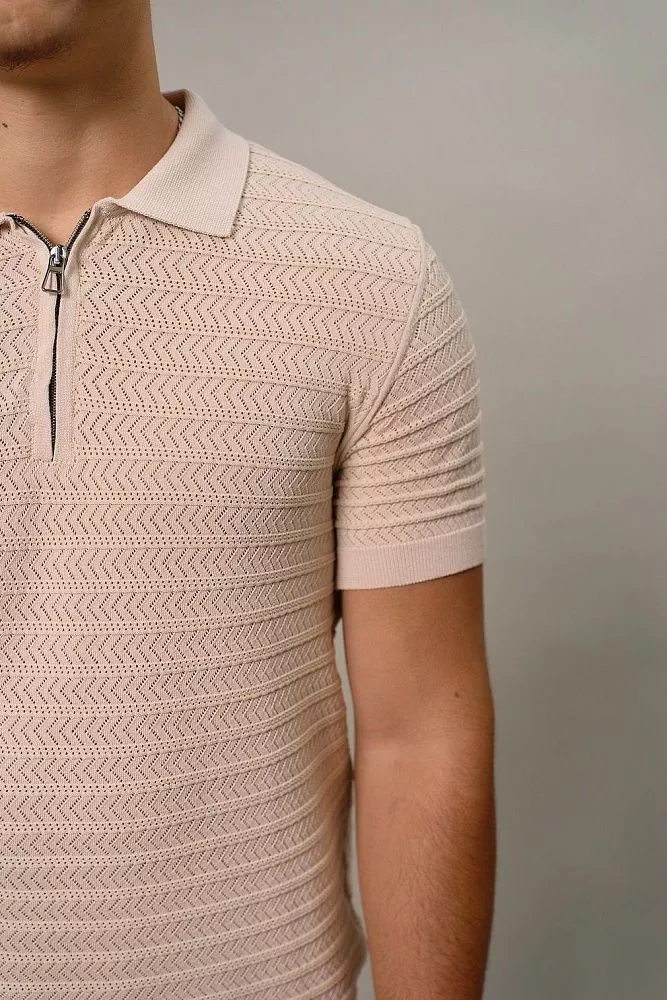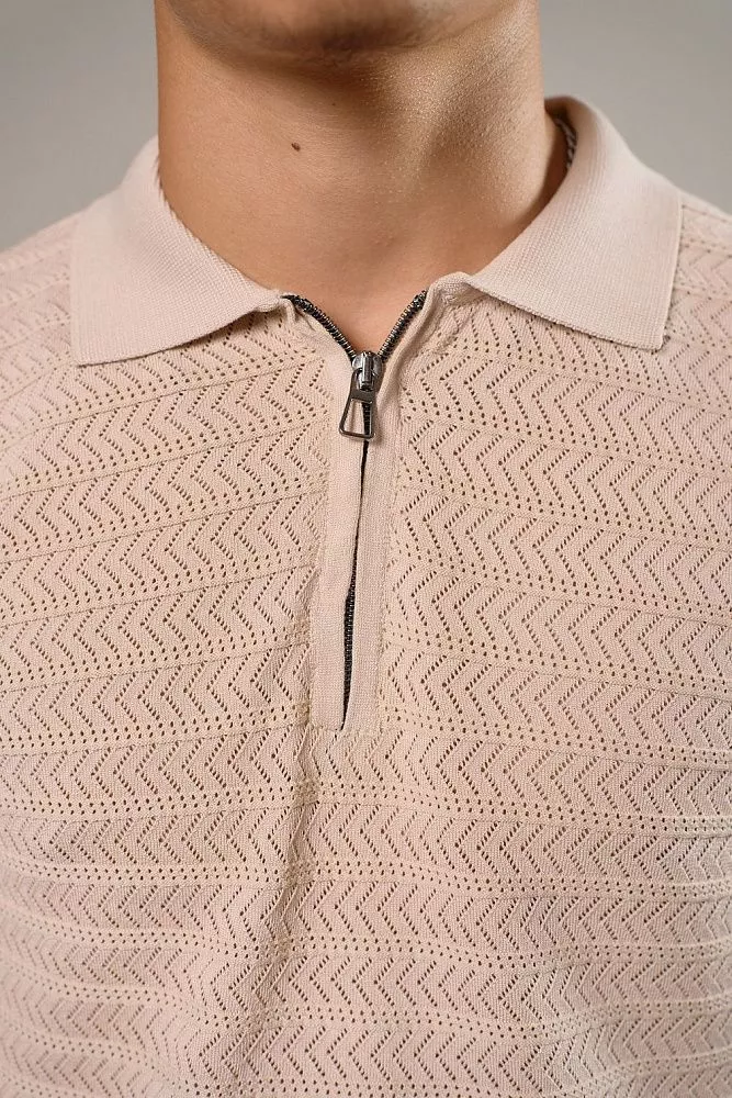 Оцените современный стиль и комфорт с нашим бежевым поло, которое мгновенно обновит ваш повседневный гардероб. Удобный ворот на молнии позволяет легко регулировать глубину выреза, а уникальный рисунок перфорированного плетения придает изысканность и оригинальность вашему образу. Прилегающий силуэт идеально подчеркивает фигуру, обеспечивая при этом свободу движений и уверенность. Сочетание хлопка и эластана гарантирует мягкость, отличную посадку и долговечность, что делает это поло идеальным выбором для активного дня или непринужденного вечера.