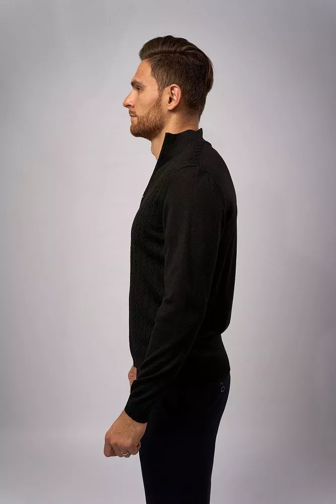 Стильный джемпер для осенне-зимнего сезона с длинным рукавом и декоративным рисунком в черном цвете станет незаменимой частью вашего гардероба. Модель из тёплого материала (50% шерсть и 50% акрил) обеспечивает комфорт и отличную термоизоляцию в прохладную погоду. Приталенный силуэт подчёркивает фигуру, а качественный состав материала гарантирует приятные тактильные ощущения при носке.