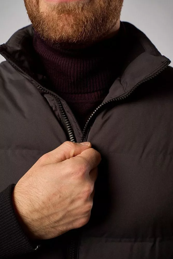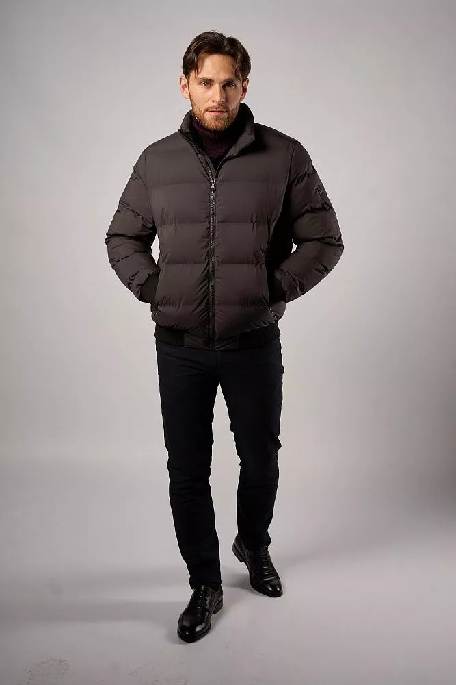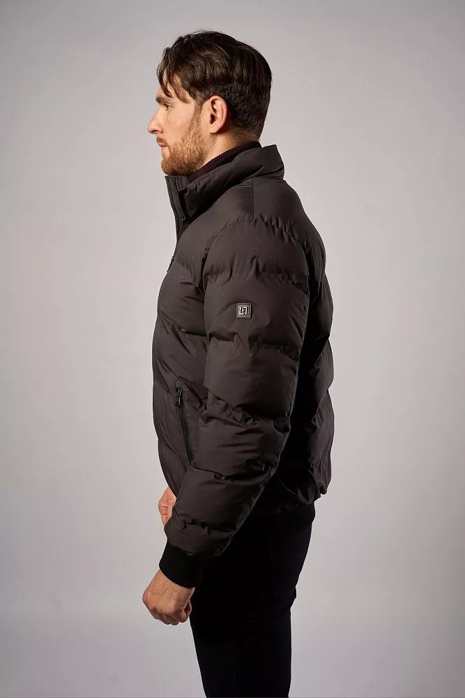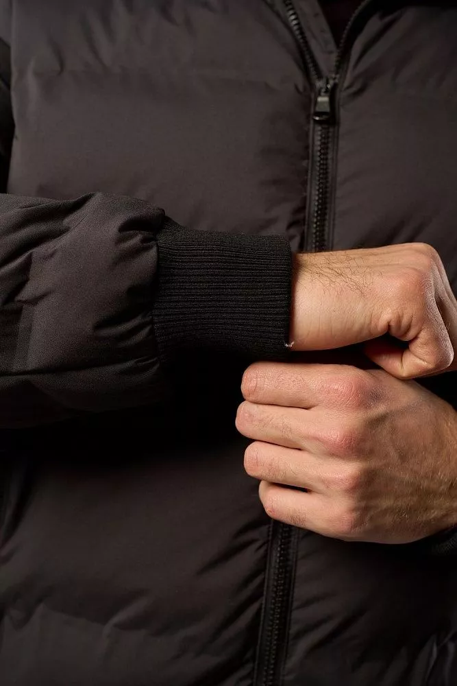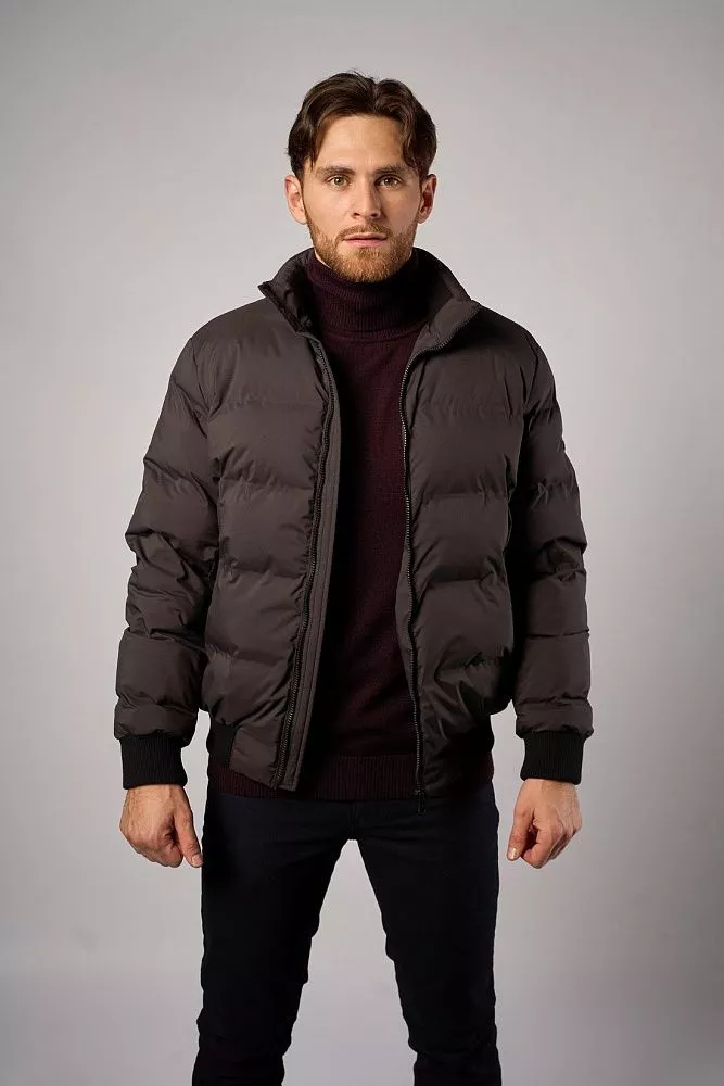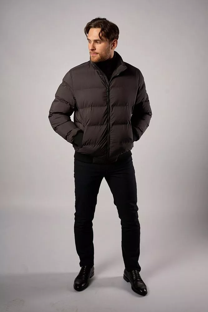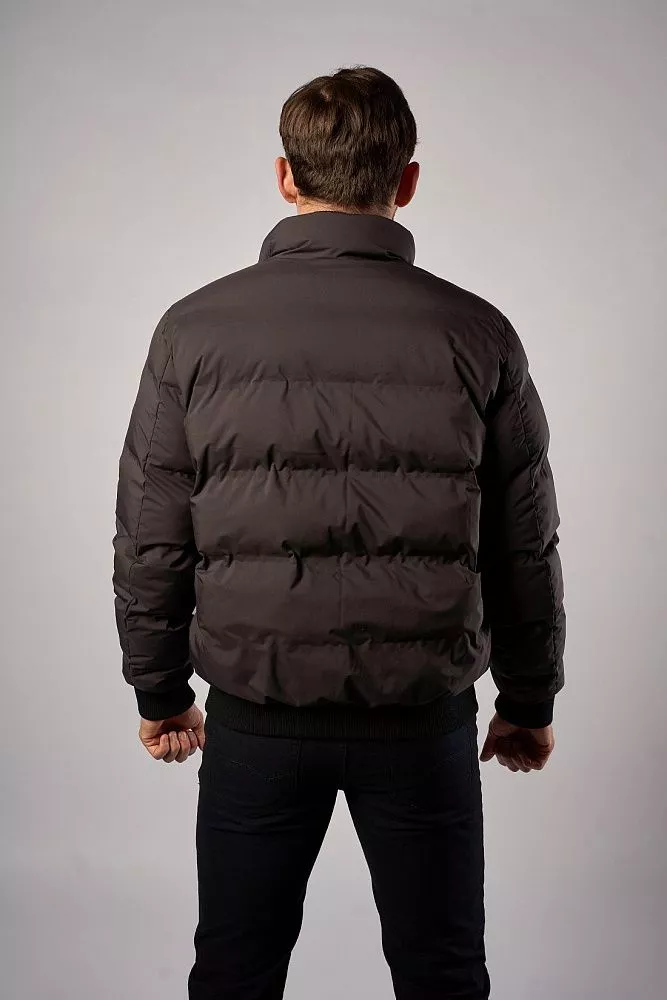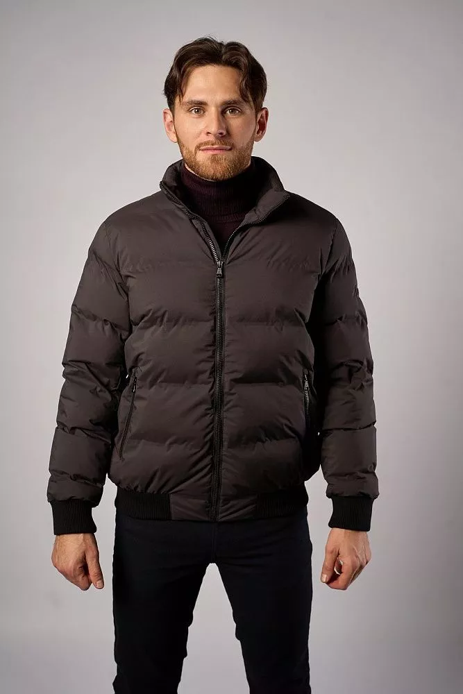 Мужская зимняя куртка тёмно-серого цвета выполнена из 100% полиэстера с технологичными искусственными наполнителями. Имеет полуприлегающий крой и короткую длину, удобна в носке. Особая деталь — манжеты на рукавах и поясе, которые обеспечивают дополнительную защиту от холода. Лаконичный дизайн подойдёт для повседневного зимнего гардероба.