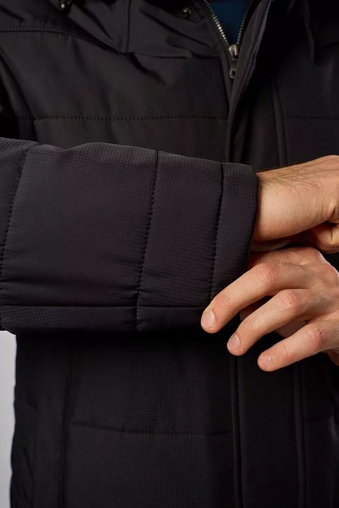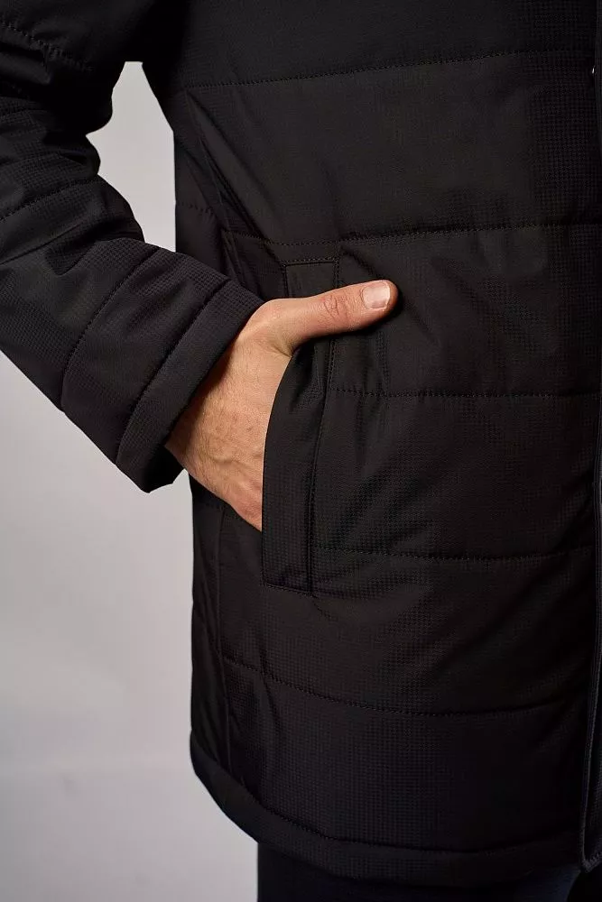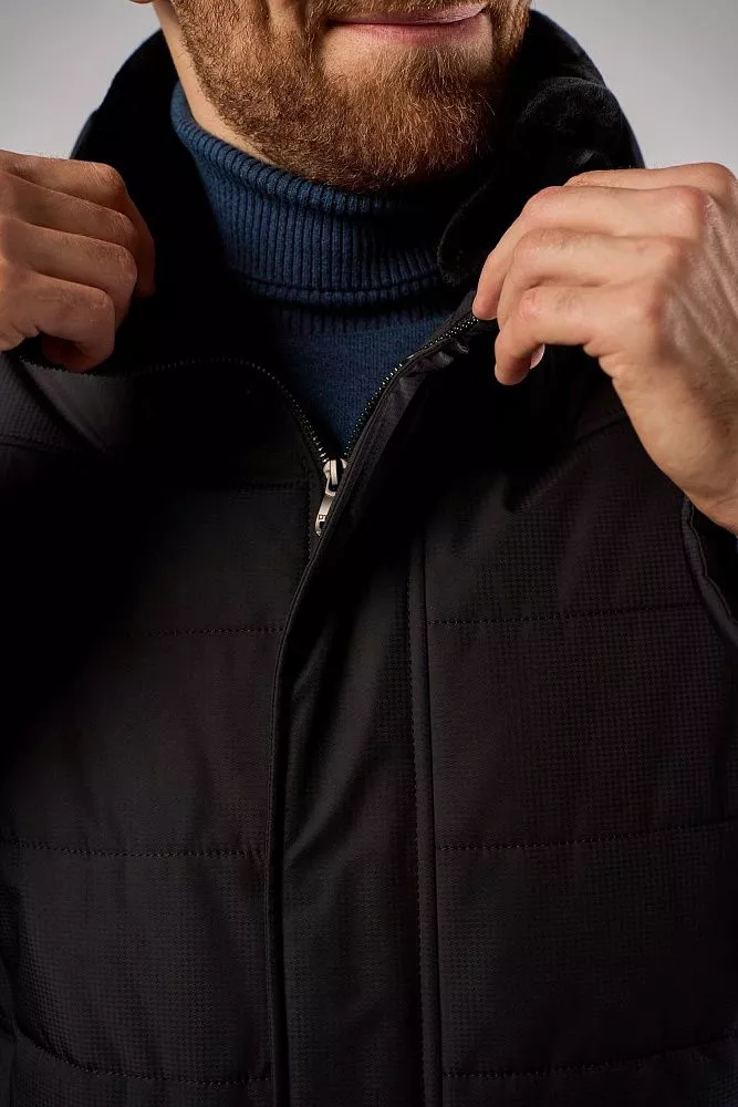 Мужская зимняя куртка — практичная и стильная верхняя одежда для холодного сезона. Выполнена в классическом чёрном цвете, имеет прилегающий крой и длину до середины бедра, что обеспечивает оптимальную защиту от холода и свободу движений. Материал изделия — прочная ткань, состоящая из 88% полиэстера и 12% нейлона, устойчивая к износу и неблагоприятным погодным условиям. Внутри используются технологичные искусственные наполнители, которые надёжно удерживают тепло, при этом не утяжеляют куртку. Особая деталь модели — мех на воротнике, добавляющий изысканности и дополнительной защиты от ветра. Идеальный выбор для зимних прогулок и повседневного ношения!
