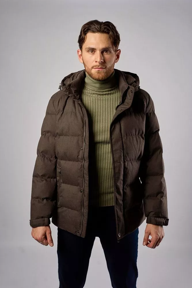 Мужская зимняя куртка в серо-коричневом цвете — практичное решение для холодной погоды. Модель с капюшоном и полуприлегающим силуэтом обеспечивает комфортную посадку и защиту от ветра. Верх из 100 % полиэстера устойчив к осадкам, а технологичные искусственные наполнители надёжно сохраняют тепло. Короткая длина делает куртку удобной для активной городской жизни и легко сочетается с разной одеждой