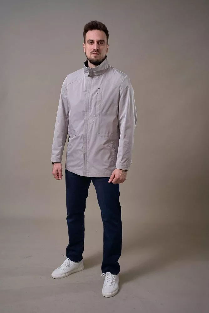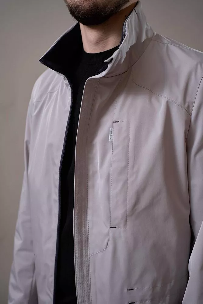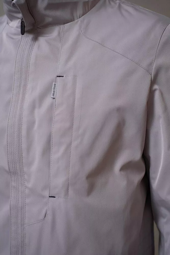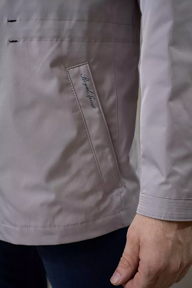 Практичная и стильная ветровка серо-бежевого цвета – идеальный выбор для переменчивой погоды. Полуприталенный крой обеспечивает комфортную посадку и свободу движений. Внутренний прозрачный карман специально разработан для вашего телефона, позволяя всегда держать его под рукой и не беспокоиться о безопасности. Легкий и непромокаемый материал защитит вас от ветра и дождя, а нейтральный цвет легко сочетается с любой одеждой.